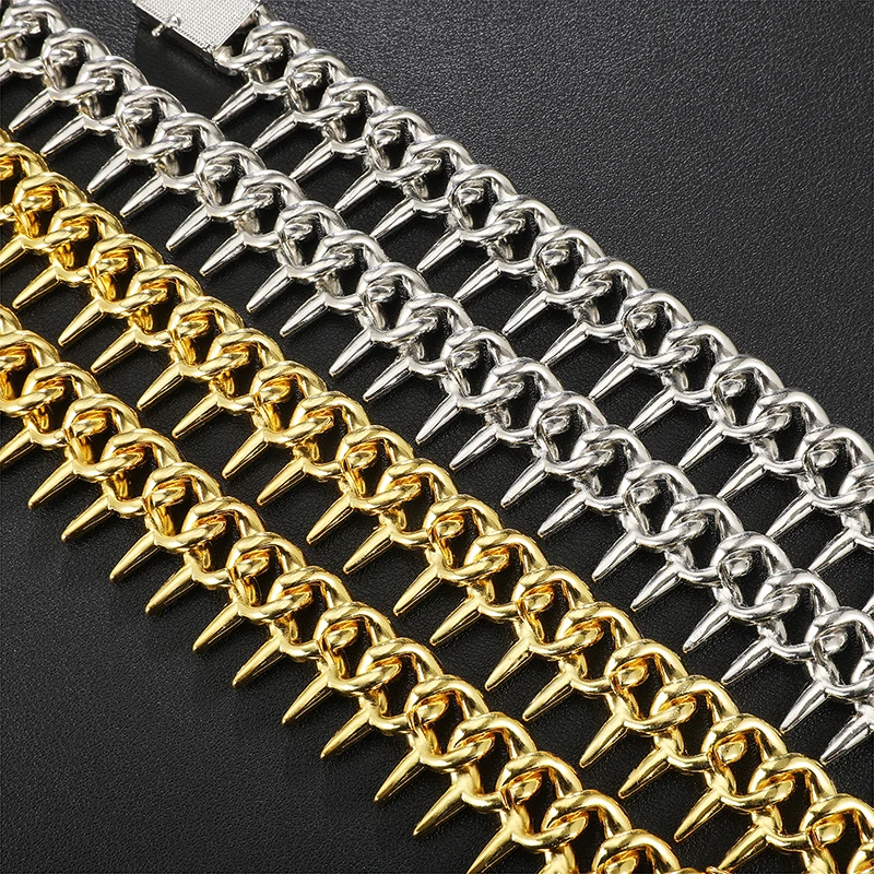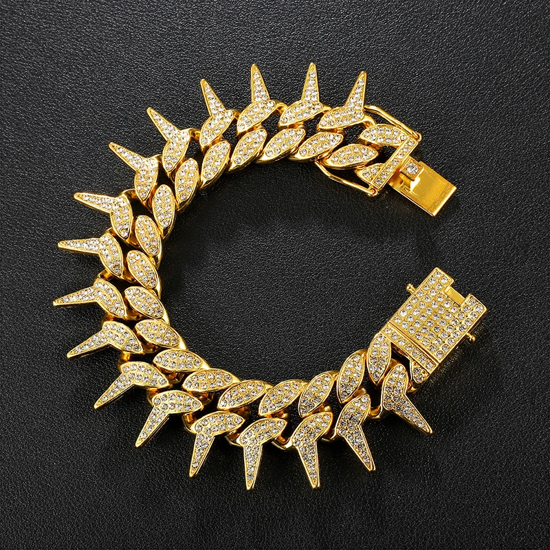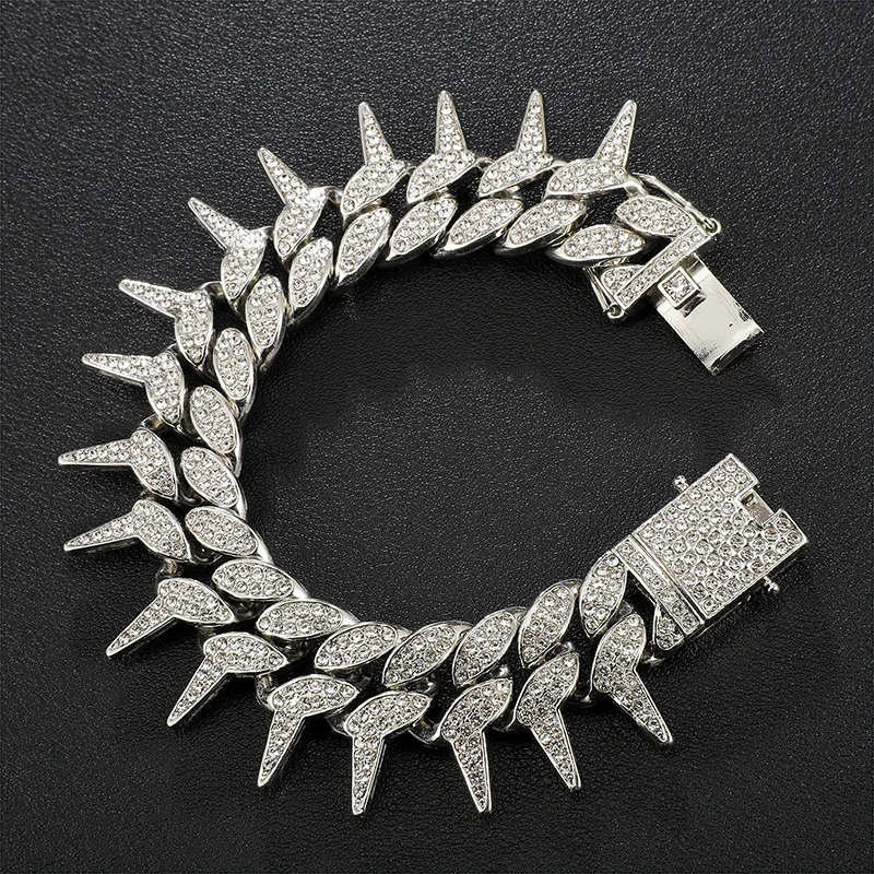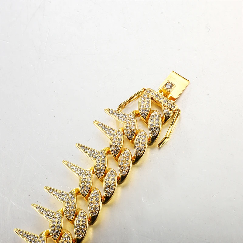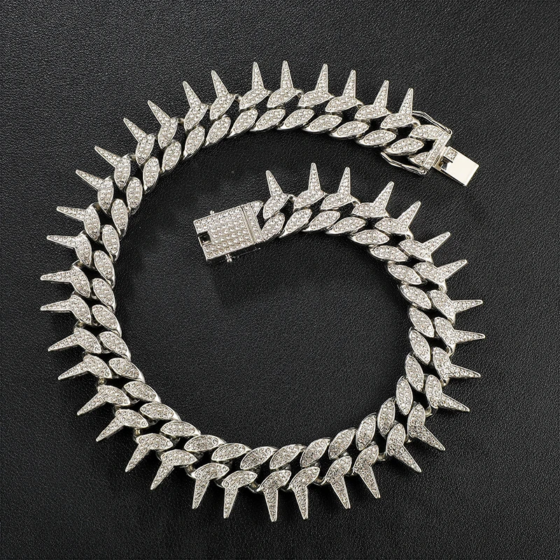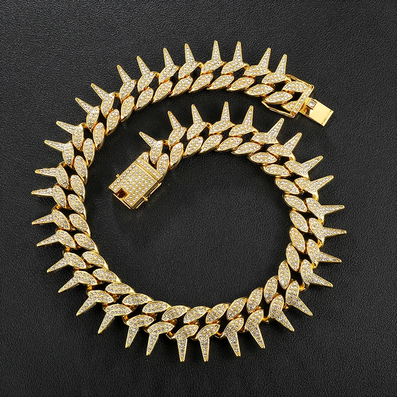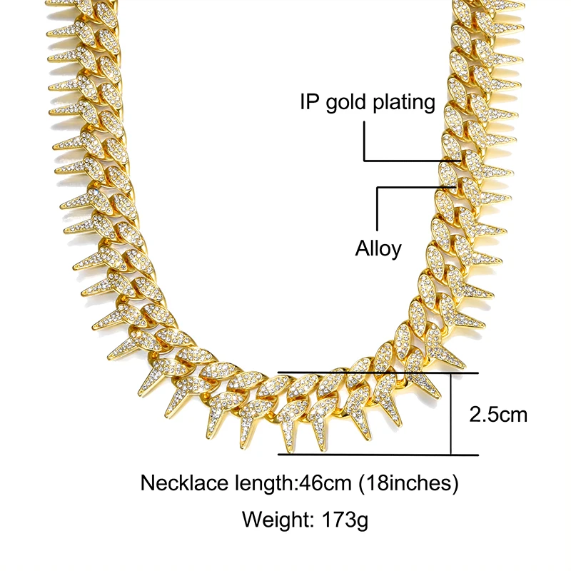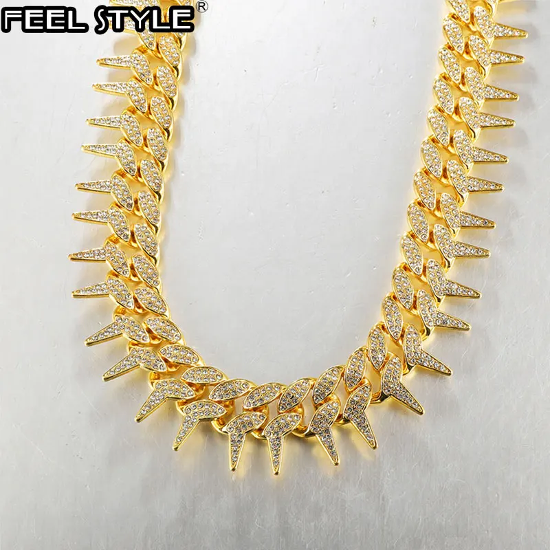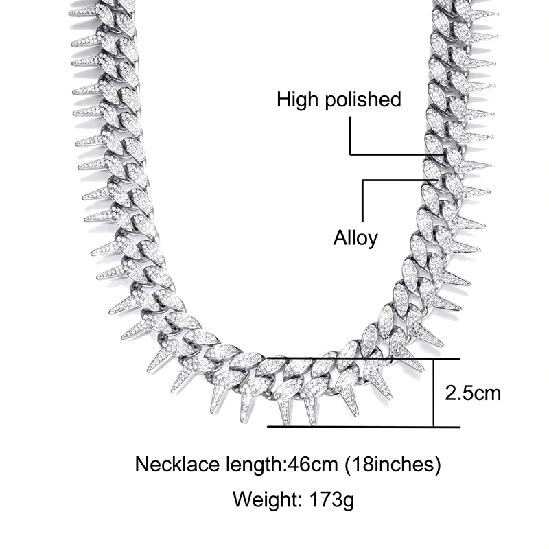 Цепочка мужская из кубинских шипов, выразительное ожерелье в стиле хип-хоп 25 мм, цепочка из звеньев с инкрустацией стразами класса ААА, ювелирное изделие