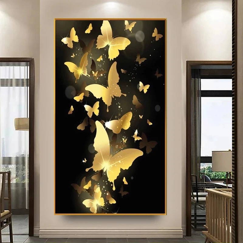 5D алмазная живопись сделай сам, Золотая Бабочка, полная вышивка, квадратныекруглые алмазы, вышивка, украшения для входной стены, Набор для творчества и подарка