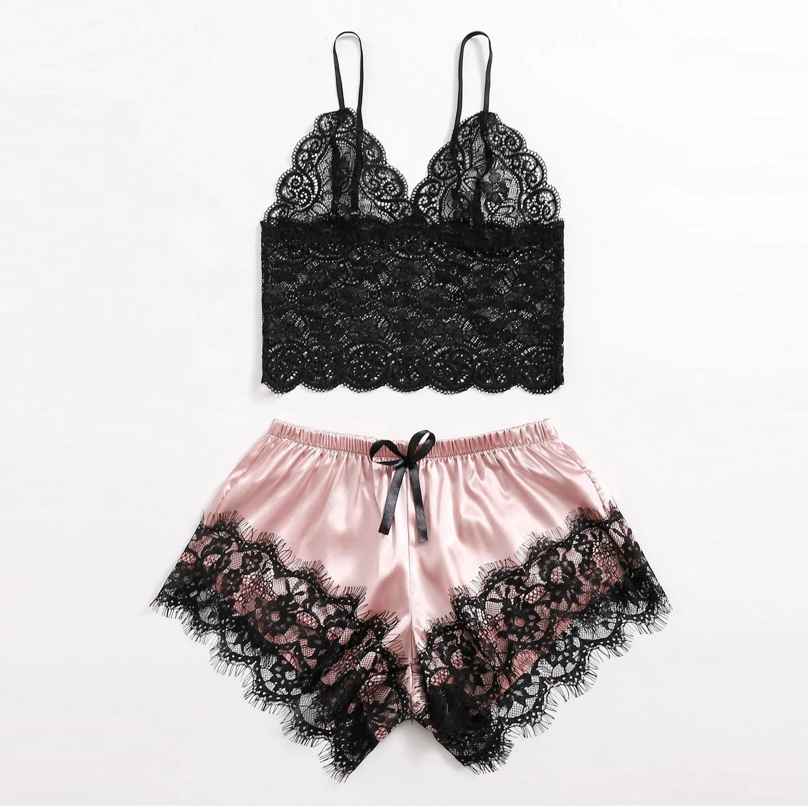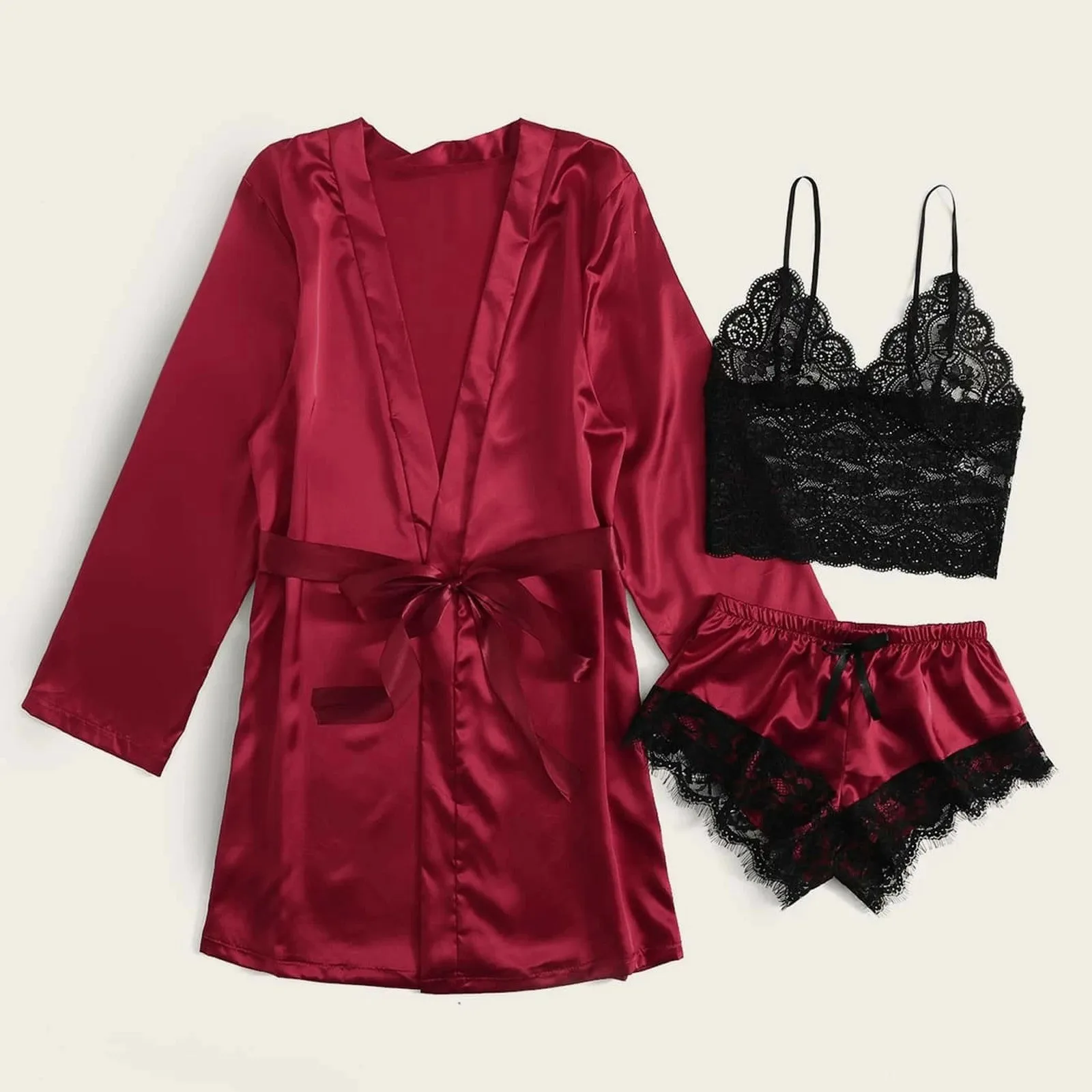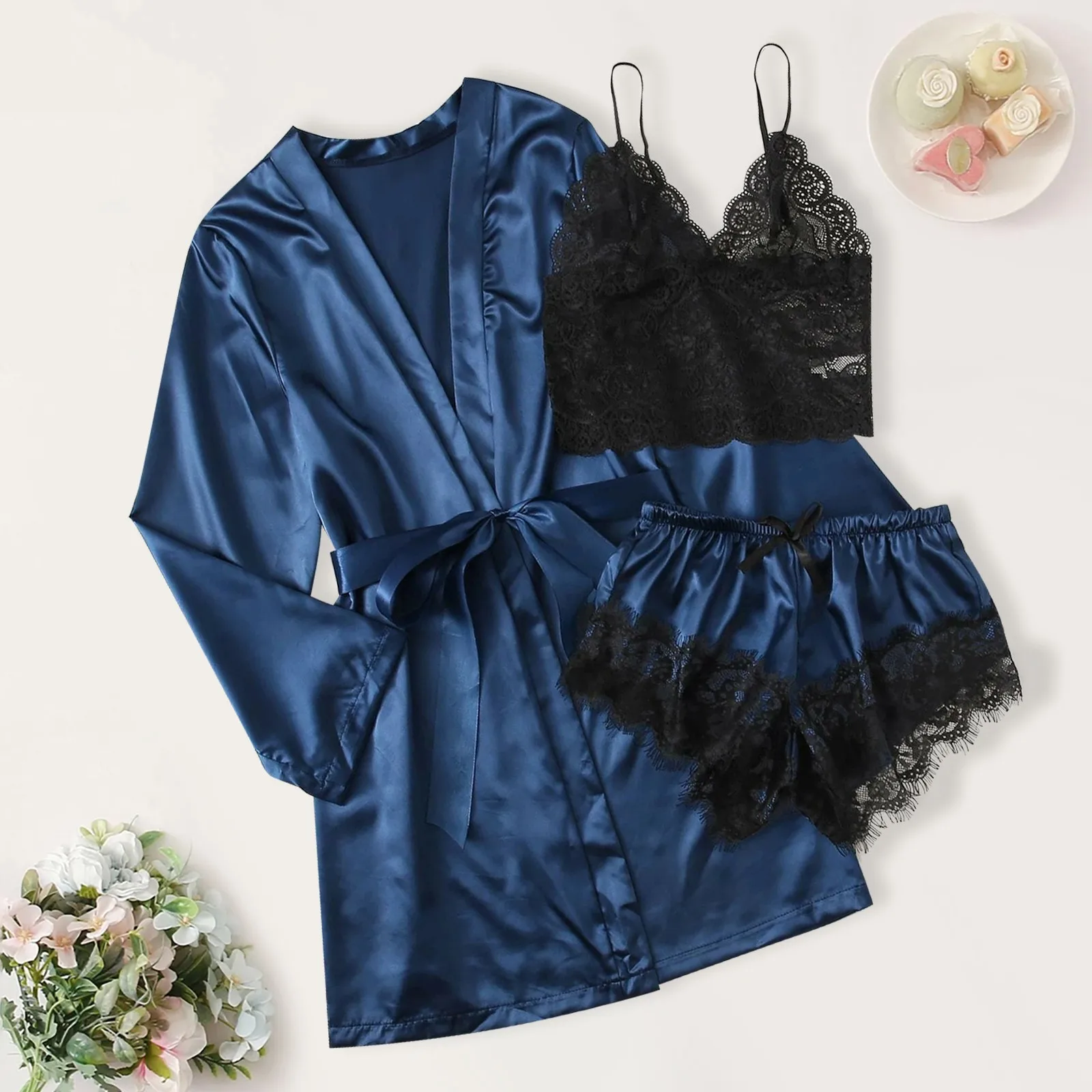 Упаковка: 1 комплект кружевной атласной пижамы (1 ночная рубашка 1 кружевной бюстгальтер 1 шорты)