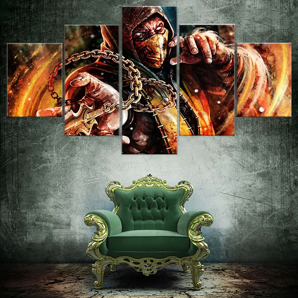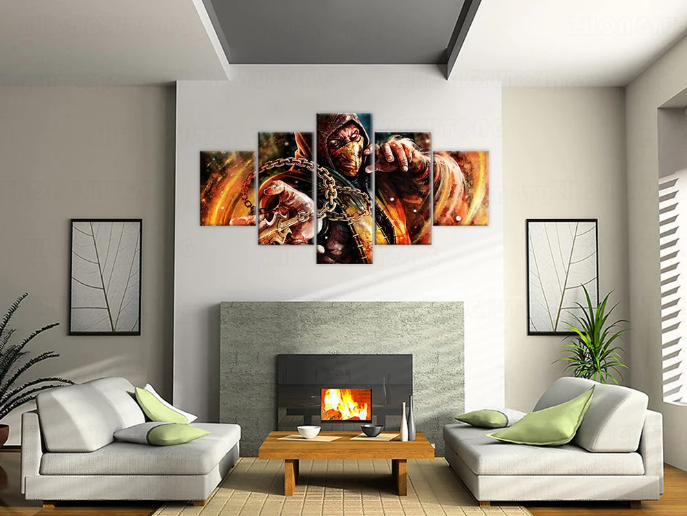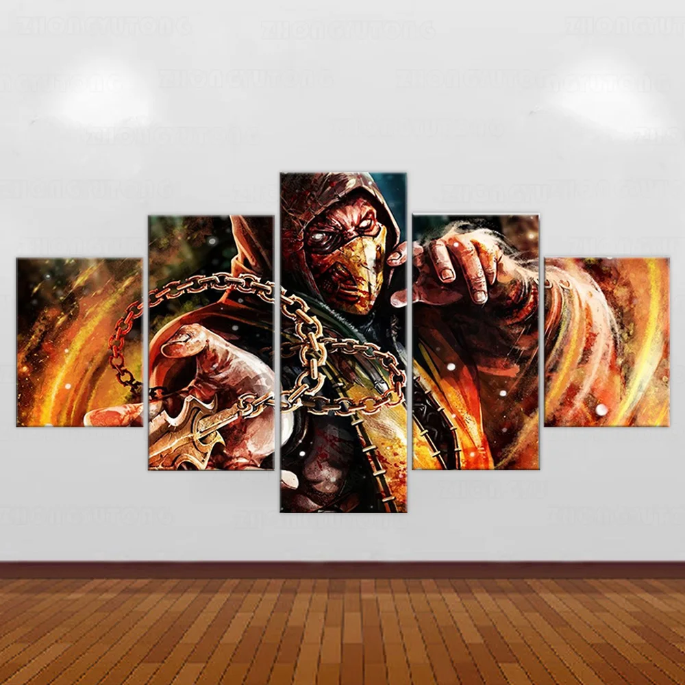 Произведения Искусства Стены Модульная повесить картину высокой четкости изображения 5 шт. Mortal kombat с принтом из игры дома постер холст ночной фон Настенный декор