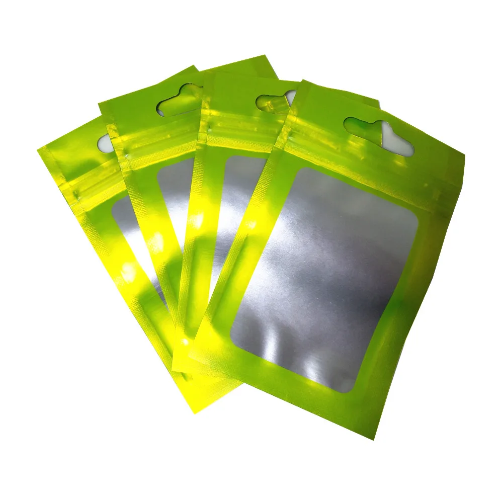 1000 шт. зеленый Mylar Фольга матовый окна замка застежка-молнии с повесить упаковка с отверстиями сумка вторичной переработки застежка-молния, ювелирное изделие, подарок в розницу сумка для хранения