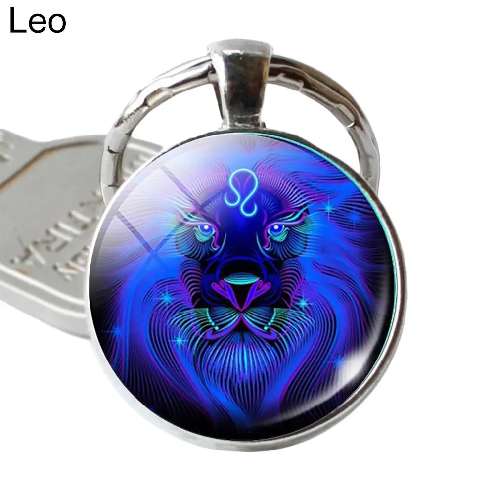 12 созвездий времени драгоценный камень металлический брелок знак зодиака круглый стеклянный кулон брелок держатель брелок подарок для лучших друзей