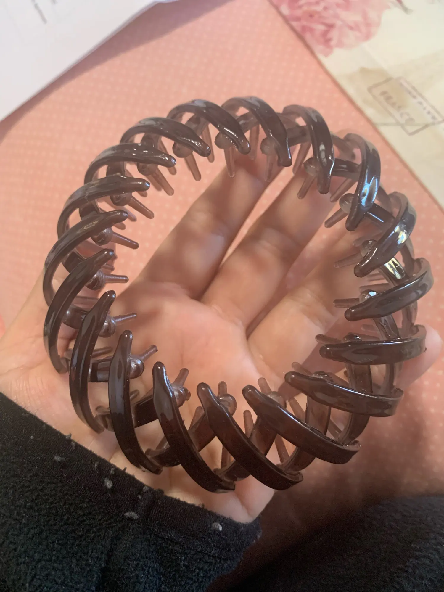 Это пластик, но с хорошим сцеплением, он держит волосы на высоком хвосте (у меня тонкие и тонкие волосы). Shipping to peru was super fast.