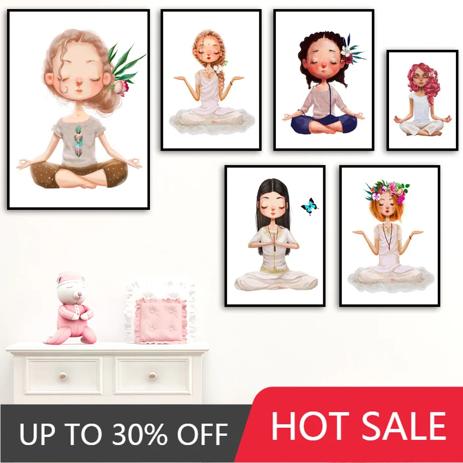 Картина на холсте с изображением милой девушки йоги лотоса, плакаты и принты в скандинавском стиле, декор для детской комнаты, настенные картины для детской комнаты