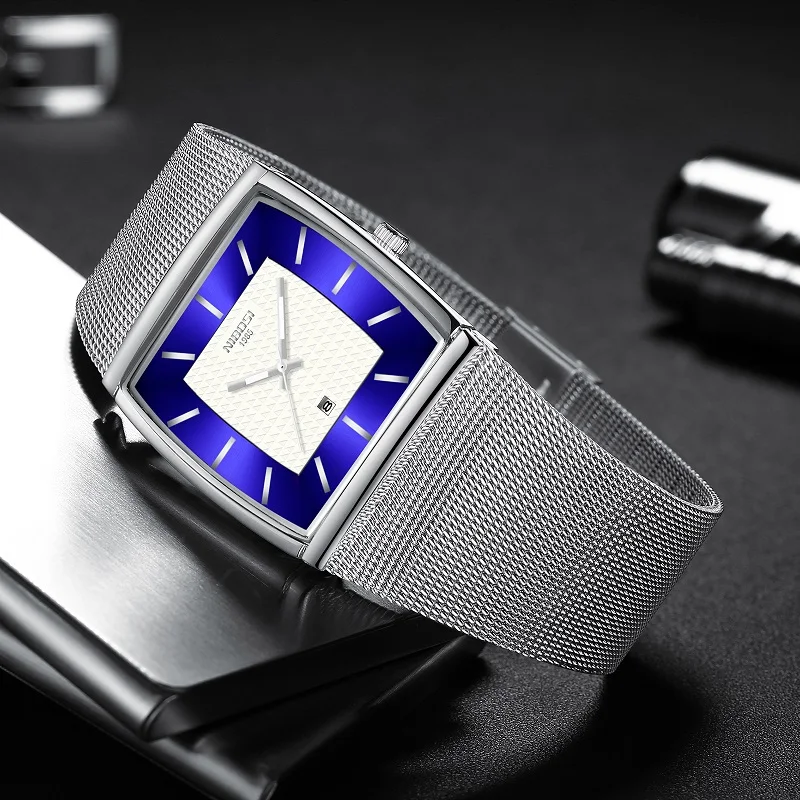 Роскошные мужские квадратные часы NIBOSI из нержавеющей стали, водо...