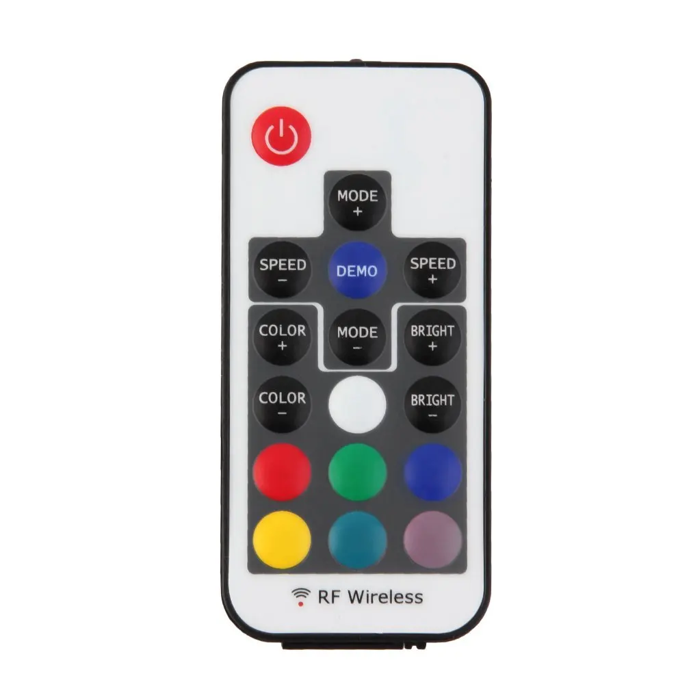 Особенности:Это светодиодный мини RGB контроллер в сочетании с 17-кнопка RF контроллер.Вам будет удобнее управлять полосками, так как мини-контроллер легко скрывается, и радиочастотный контроллер может пройти через battier и получить большое расстояние управления и диапазон управления, так как это не нужно стремиться к основному блоку во время работы.Компактный, легкий и портативный.Прост в использовании.Подходит для большинства светодиодный светильник.