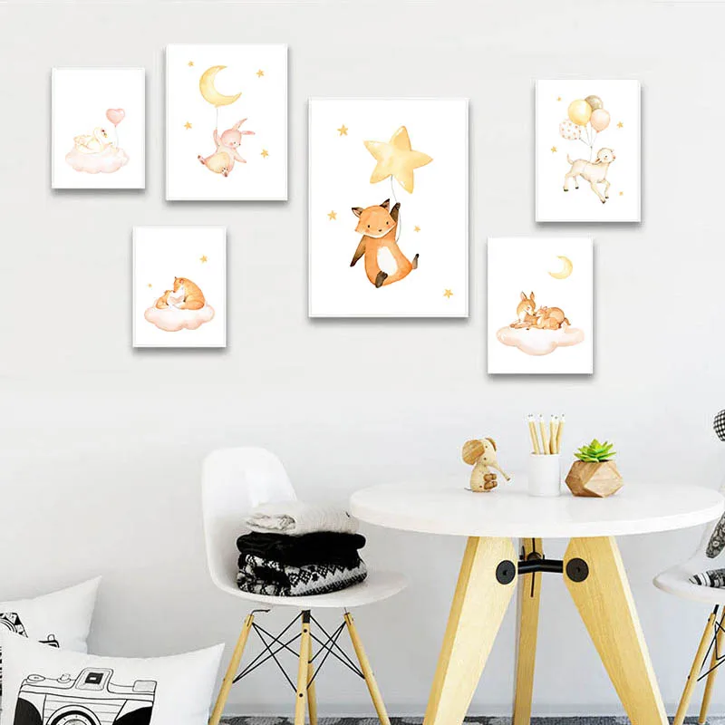 Детские животные, жираф, Лев, кролик, детская Картина на холсте, По...