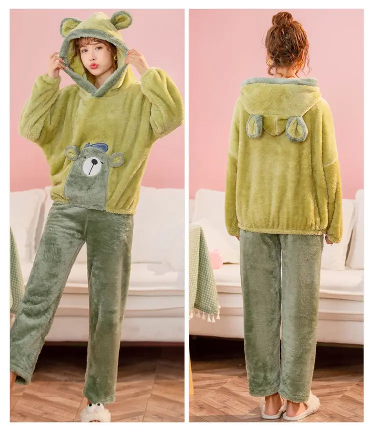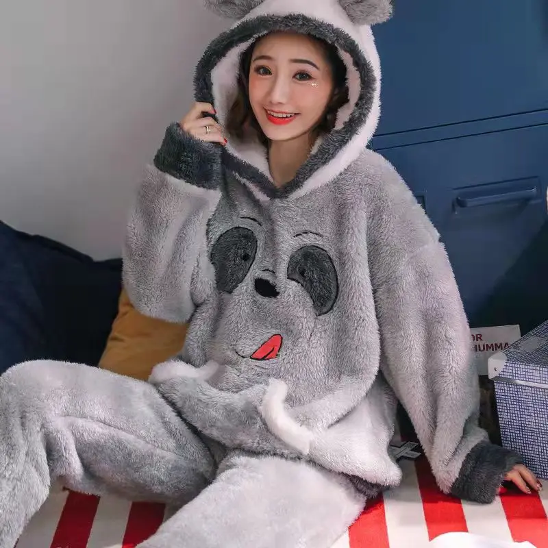 2021, Женский пижамный комплект, зимние толстые теплые фланелевые пижамные комплекты, Мультяшные пижамы, Женская домашняя одежда, одежда для сна с животным медведем, женская пижама