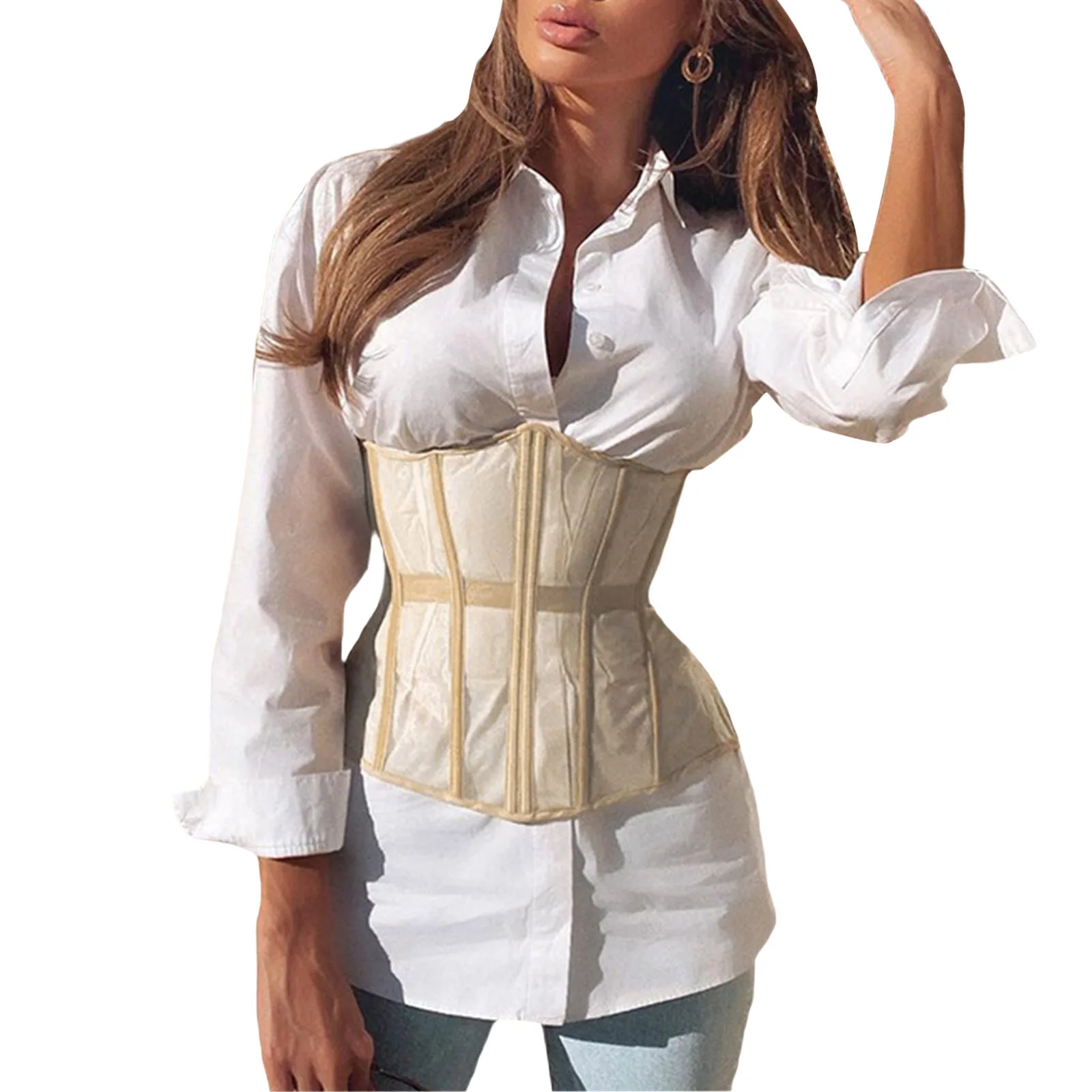 Женский сетчатый корсет с коротким поясом, сексуальные однотонные облегающие пояса Waspie