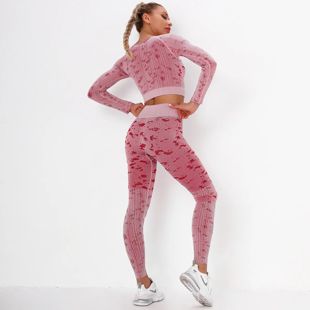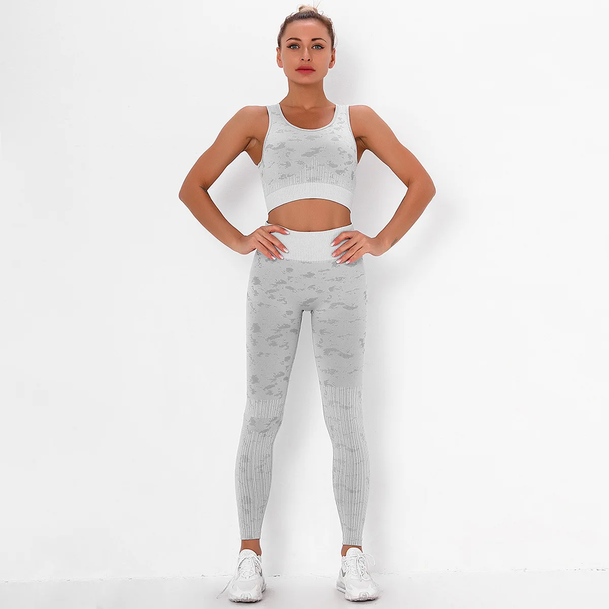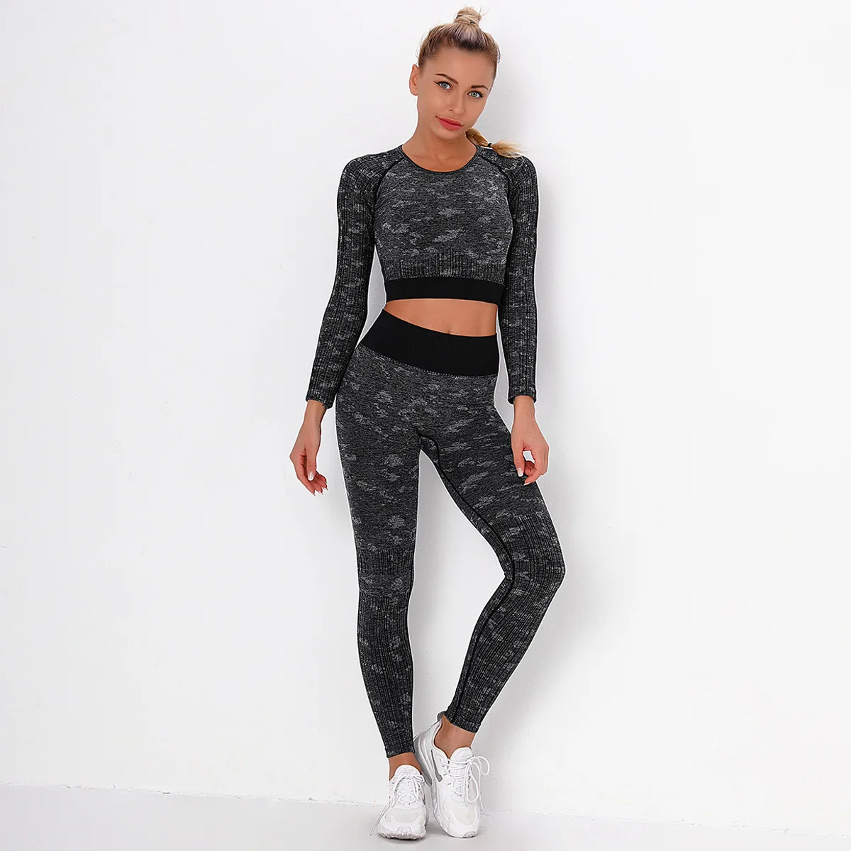 Комплект спортивной одежды для женщин, с высокой талией, бесшовный