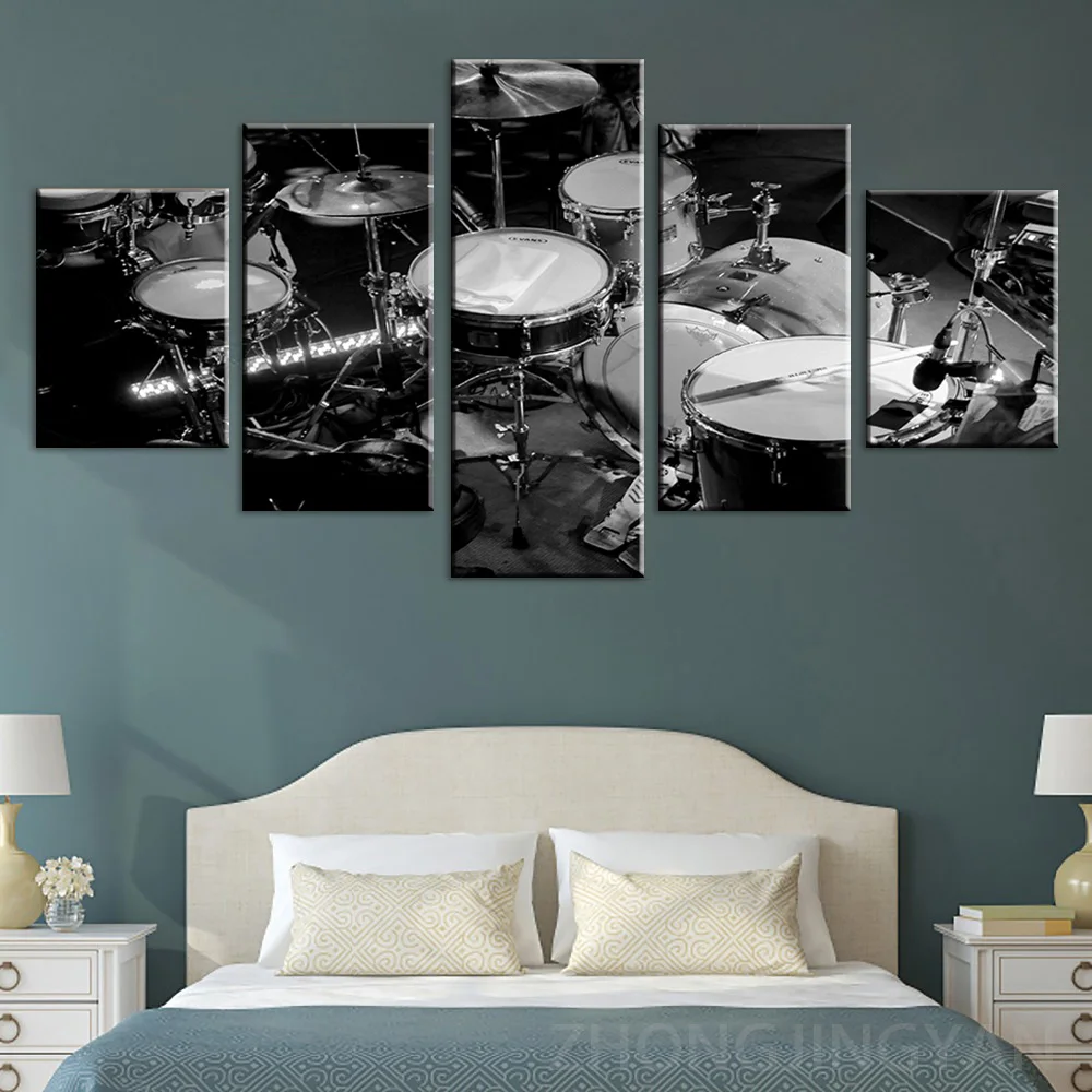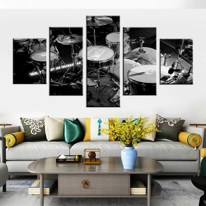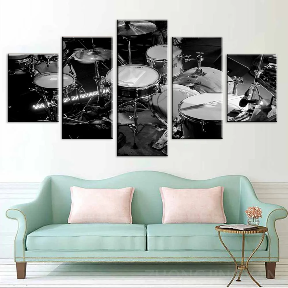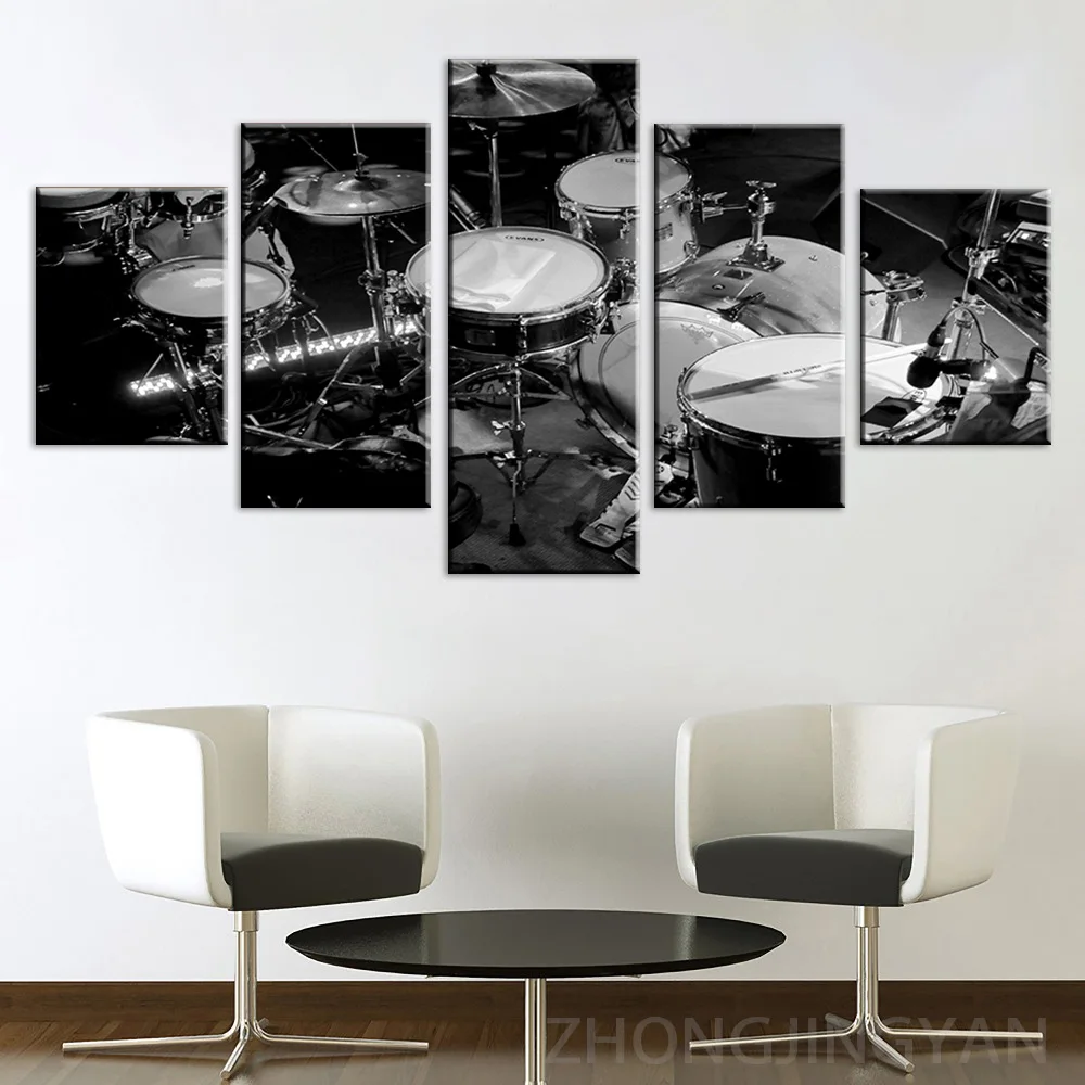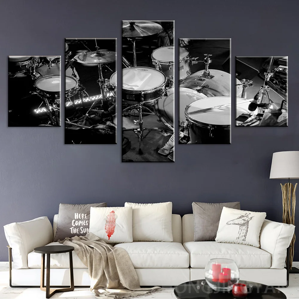 Настенная Картина на холсте модульные картины HD печать 5 шт. картины для музыкальных инструментов черный белый постеры барабаны гостиная домашний декор