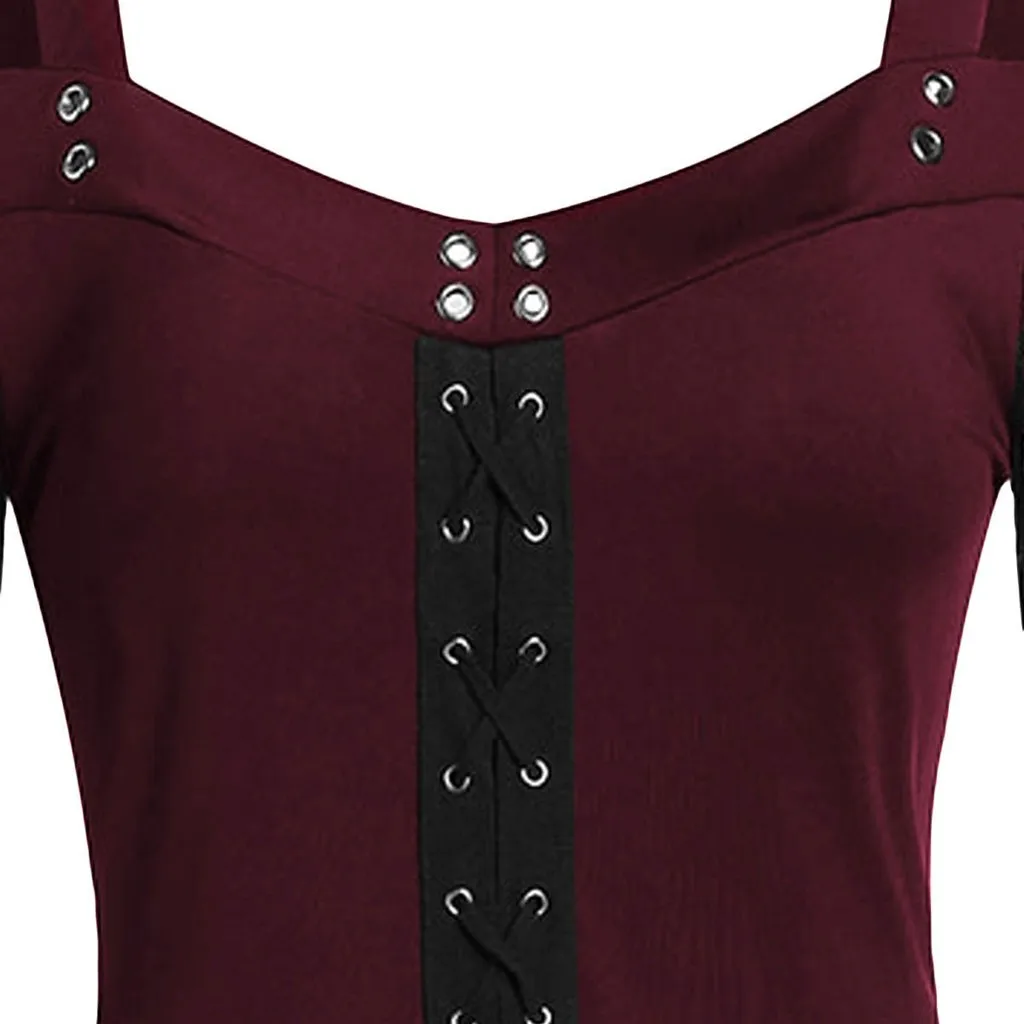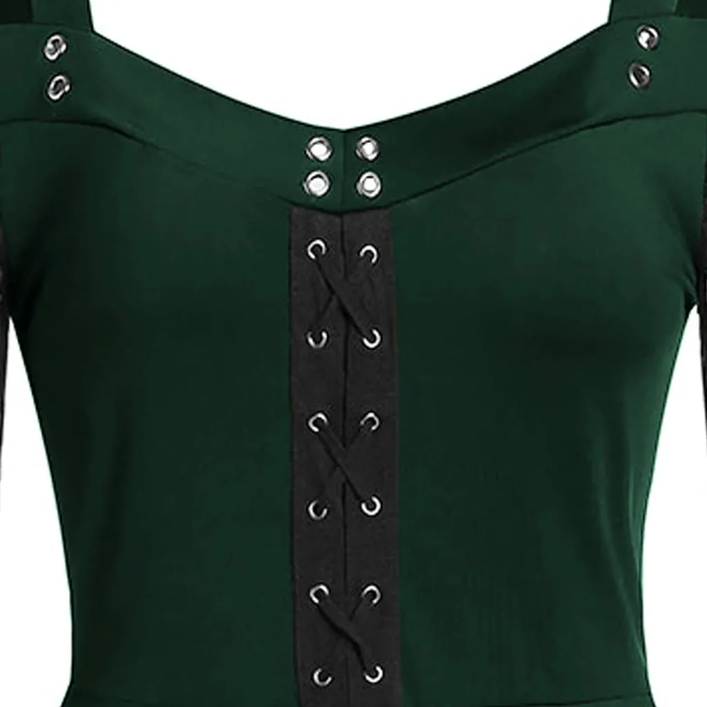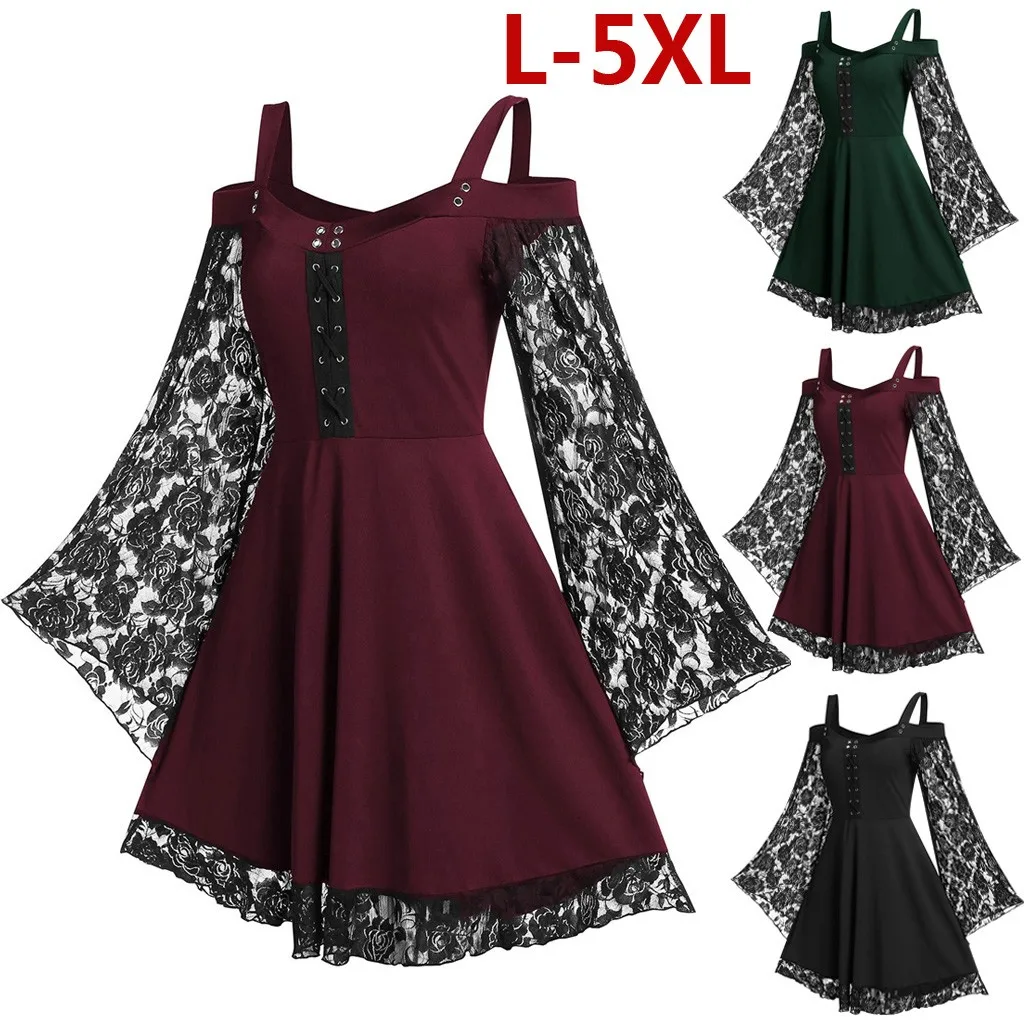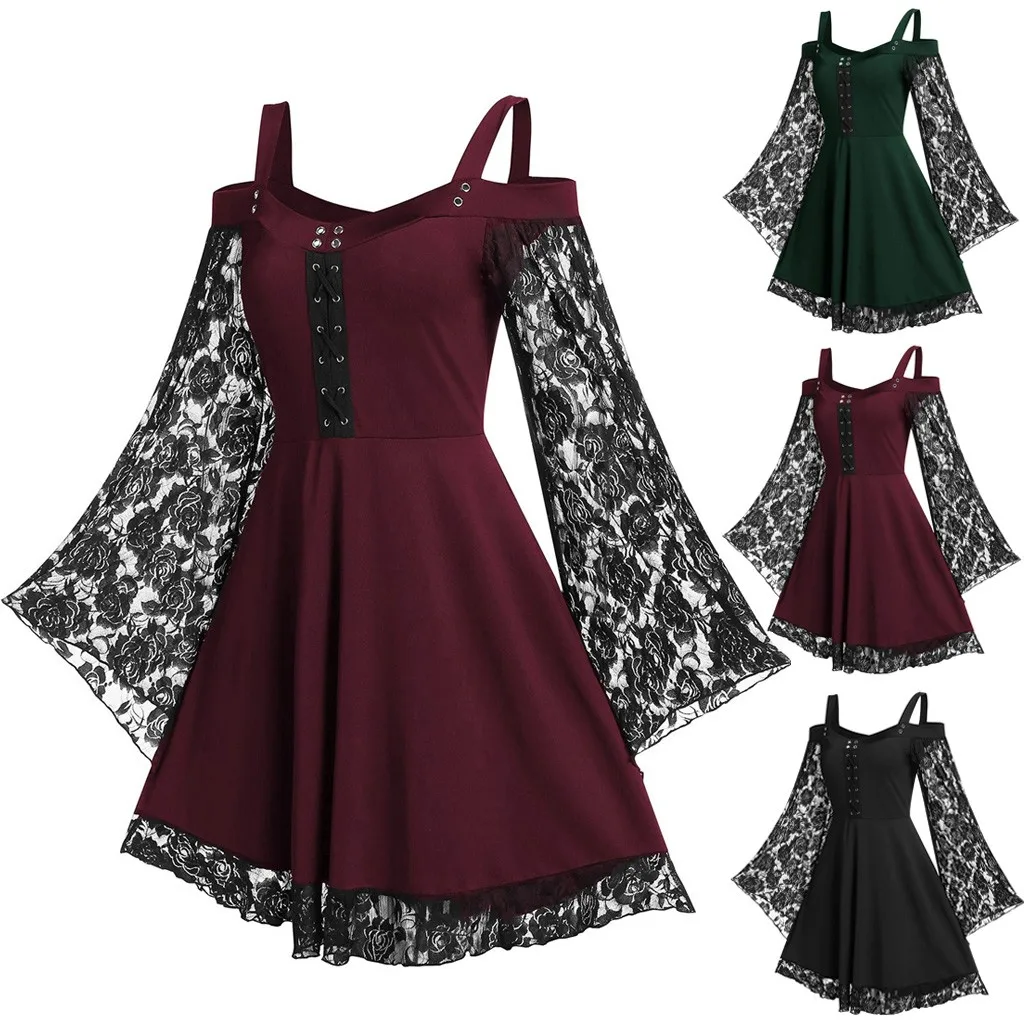 Женское платье на бретельках, готическое лоскутное платье с расклешенным рукавом, открытыми плечами и шнуровкой, платье разных цветов, 2022