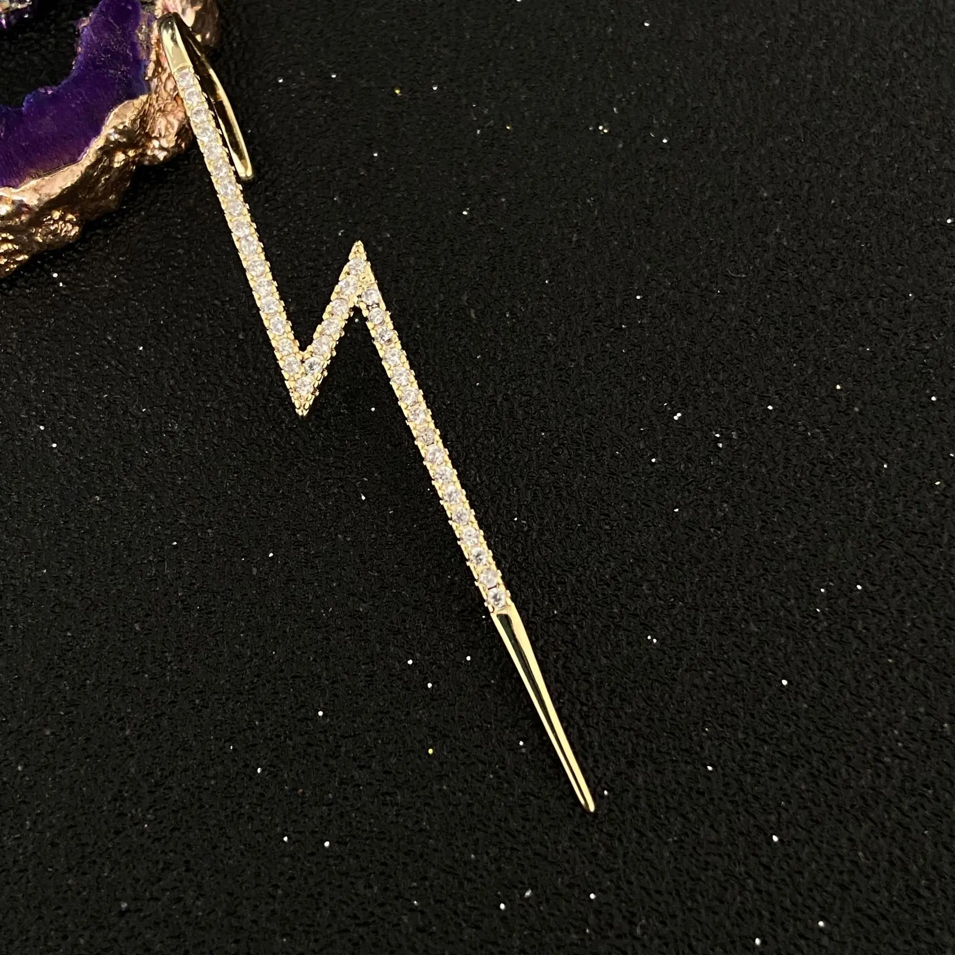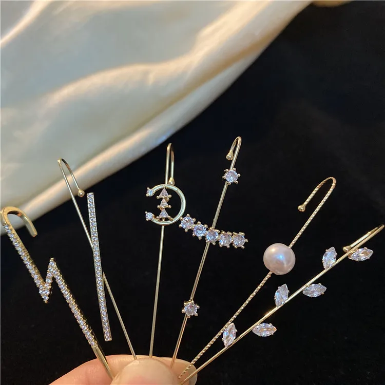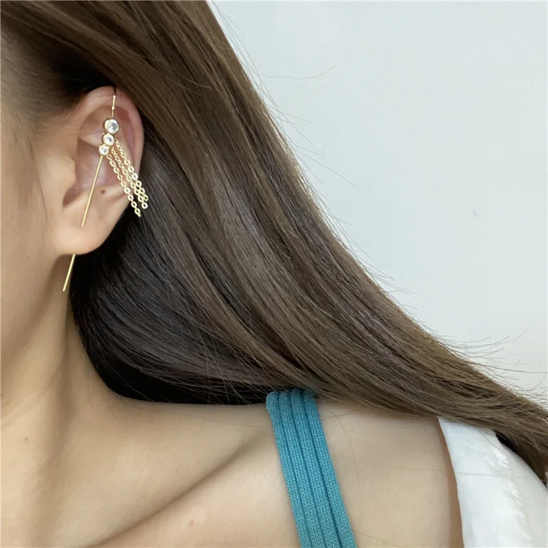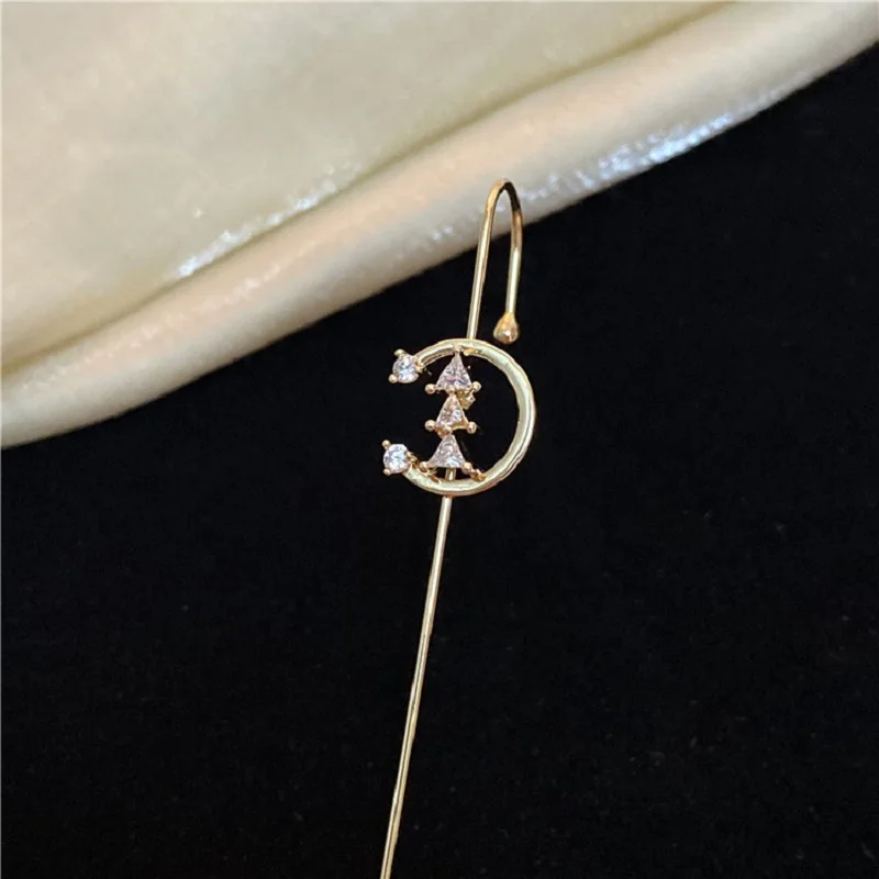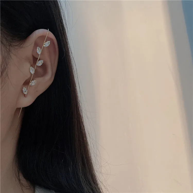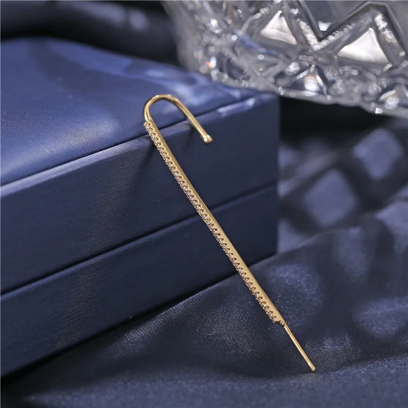 Модные дизайнерские серьги-гвоздики в виде крючка для ушей, серьги-гвоздики с кристаллами для женщин, длинные серьги с цирконием и молнией, ювелирные изделия для альпинизма