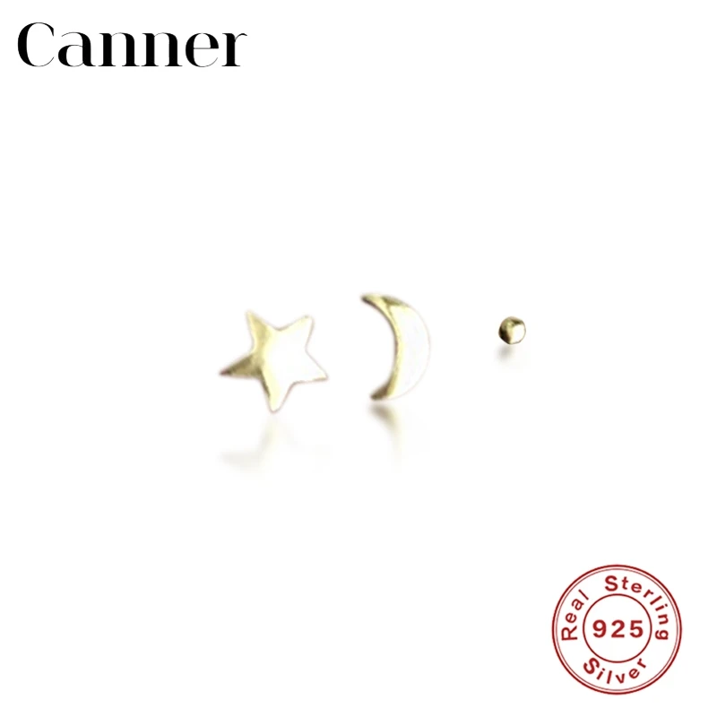Женские серьги-гвоздики из стерлингового серебра 925 пробы с Луной и звездами, украшение для пирсинга, 1 комплект, серьги геометрической формы W5