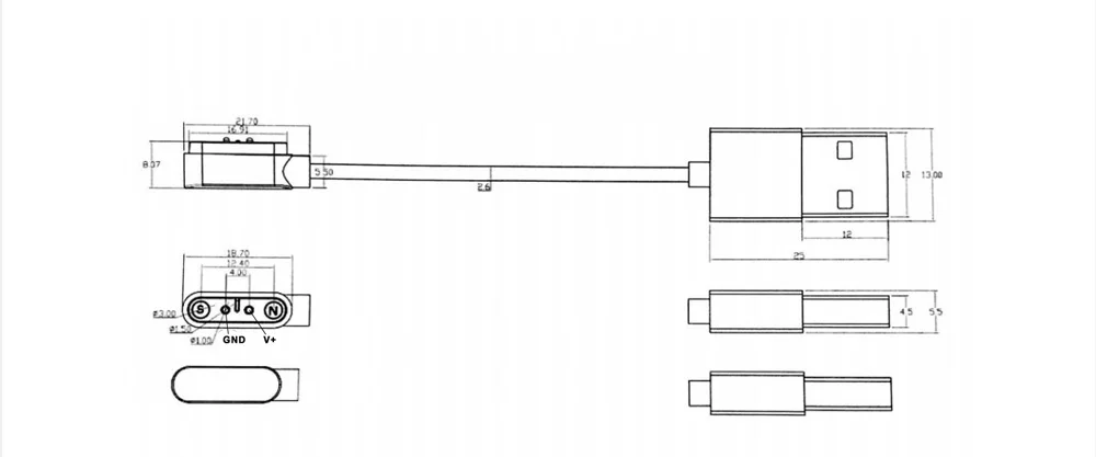 Кабель для умных часов, 2 контакта, 7,62 мм, магнитный, 2 контакта