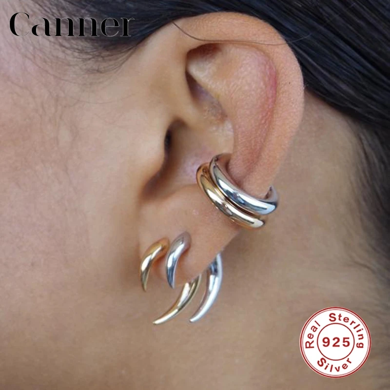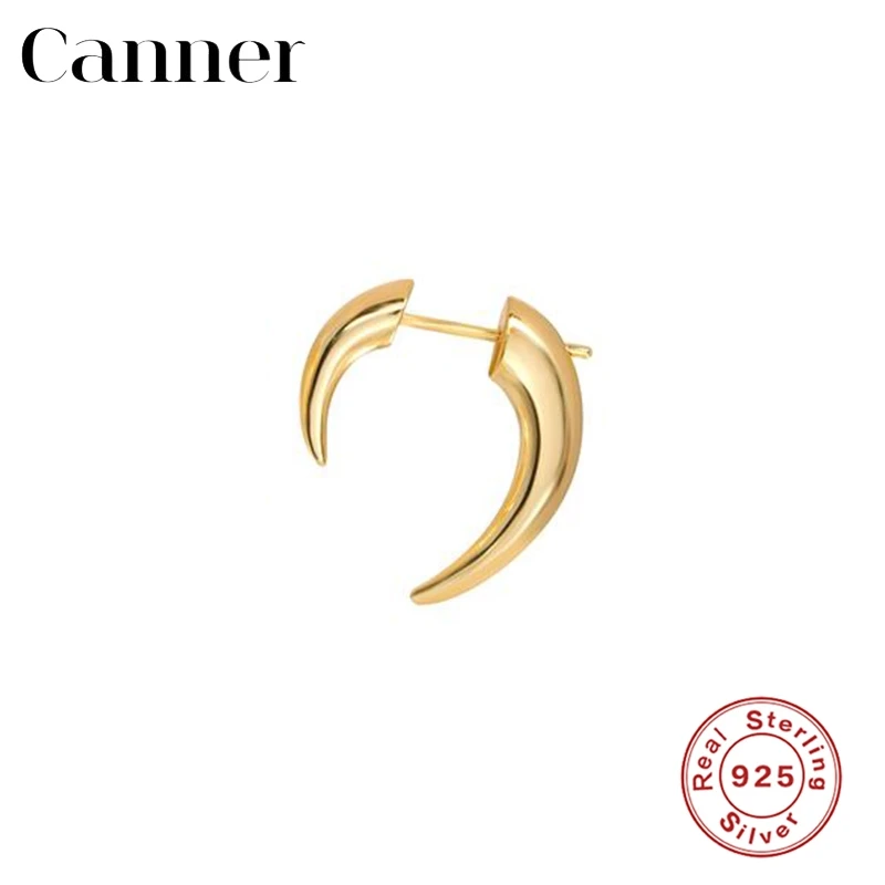 Серьги-гвоздики Canner из стерлингового серебра 100% пробы женские, креативные блестящие серьги в форме рога для пирсинга, 1 шт., W5