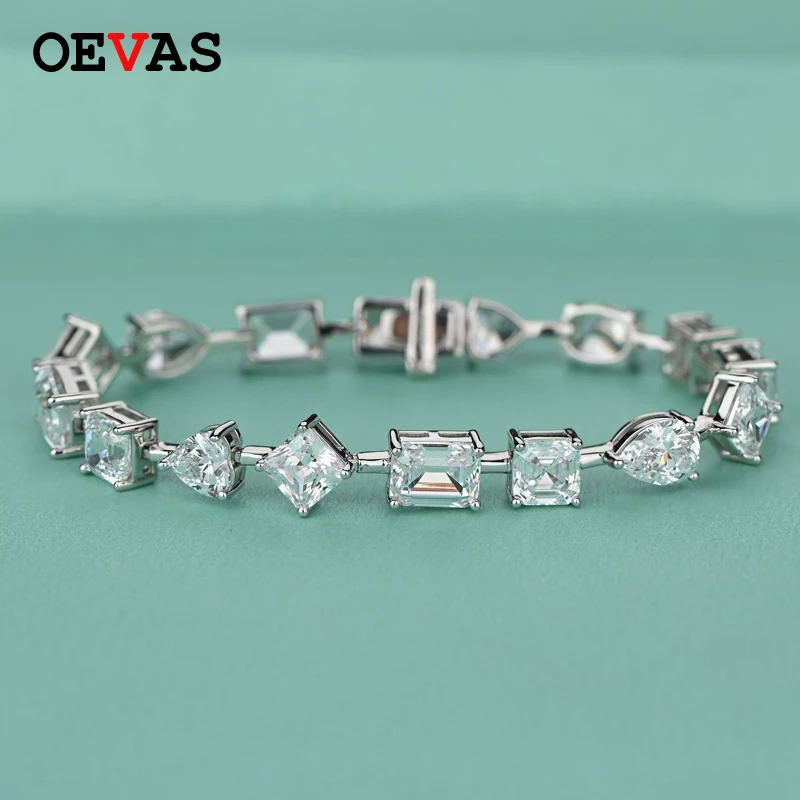OEVAS 100% 925 стерлингового серебра сверкающий с высоким содержанием углерода стразами свадебная обувь Браслет Свадебные обручальные кольца вечерние хорошая бижутерия ювелирные изделия по оптовым ценам