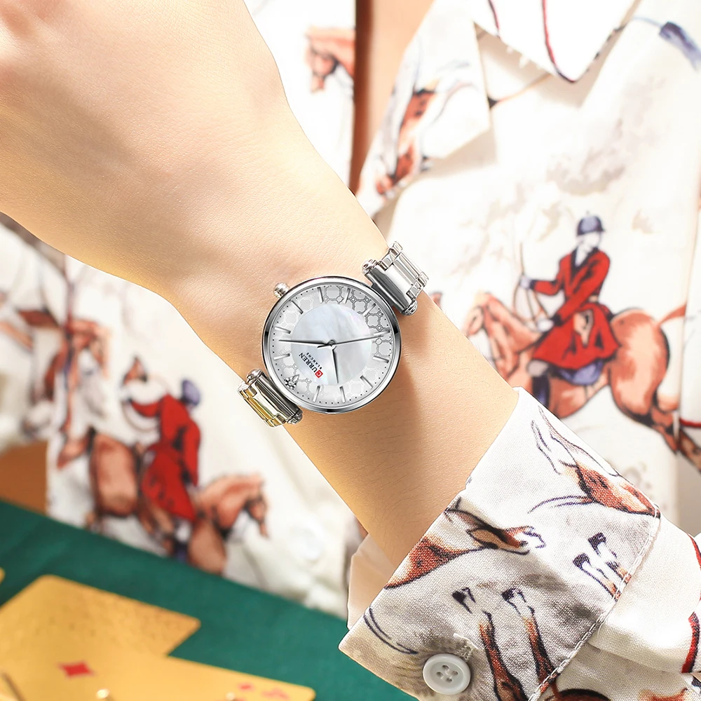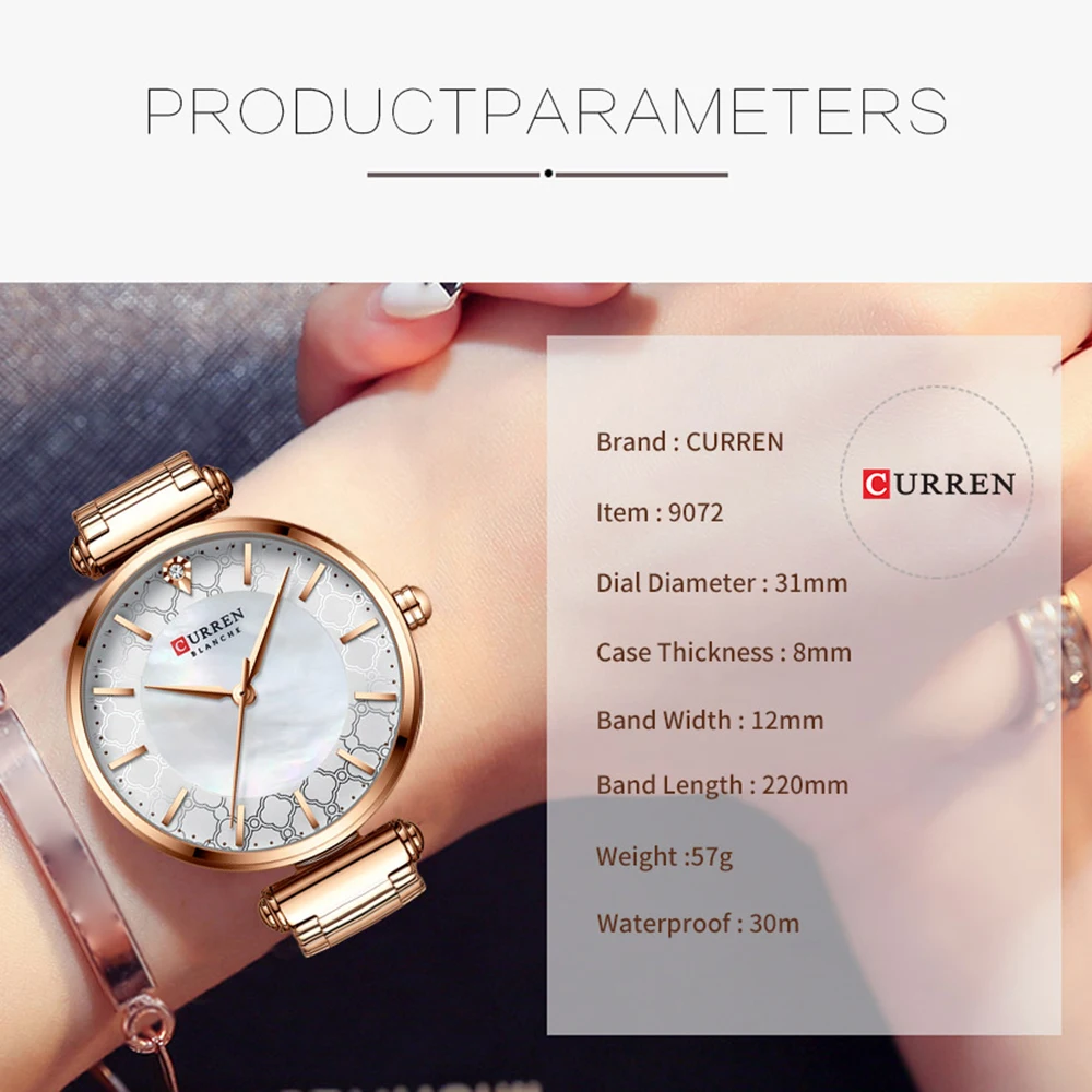 Часы CURREN женские кварцевые, классические модные наручные водонепроницаемые с браслетом из нержавеющей стали, 3 АТМ, для повседневного и делового использования