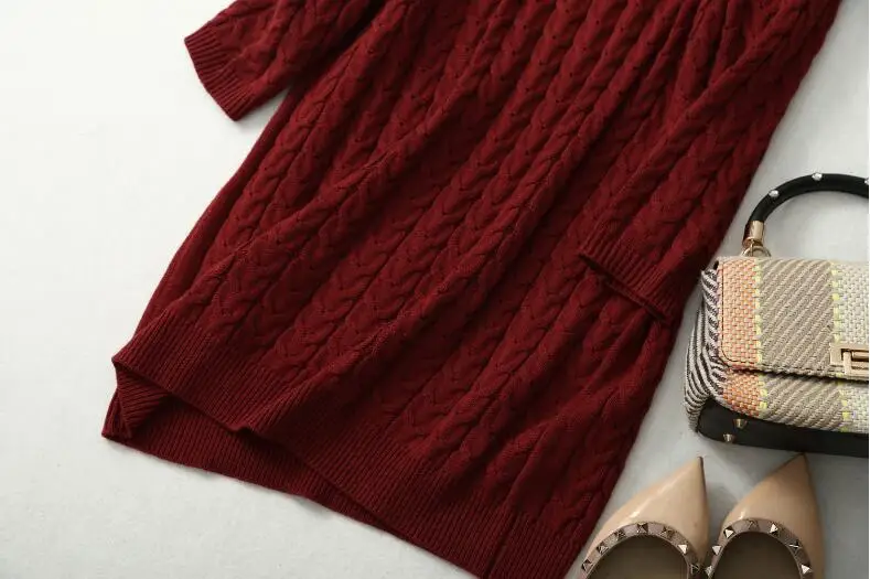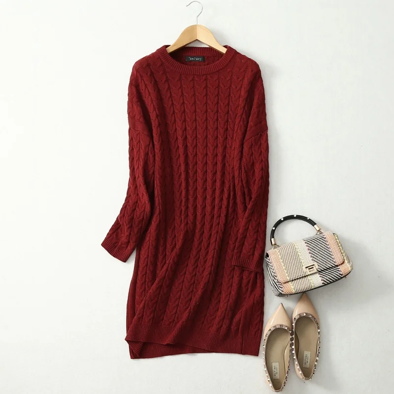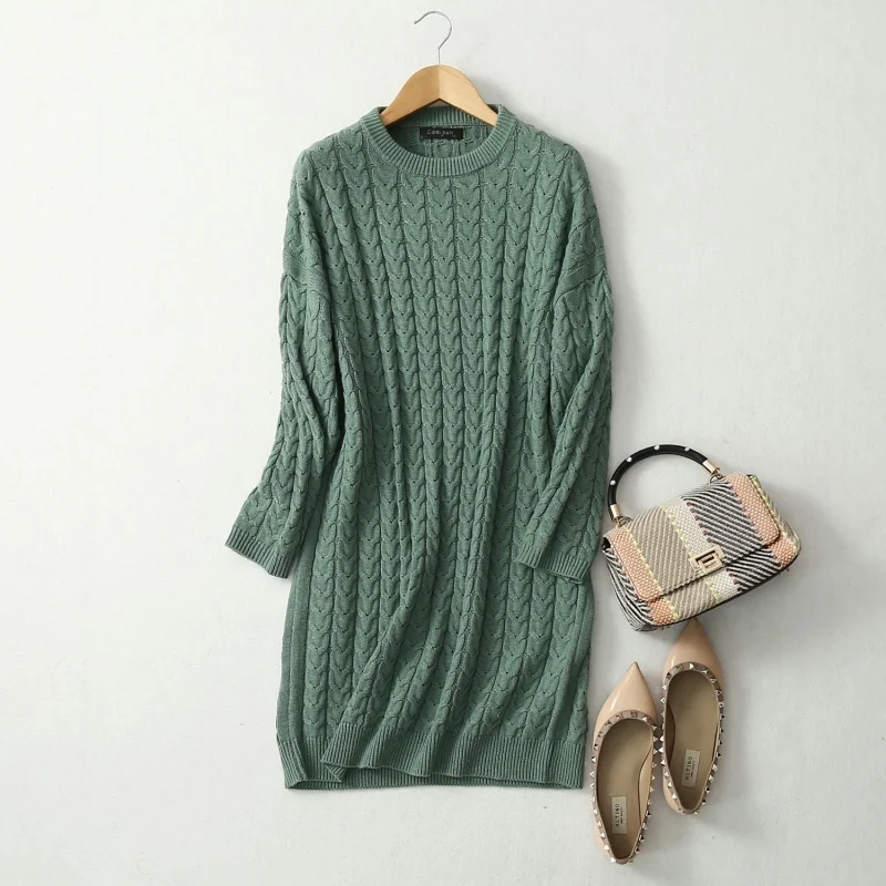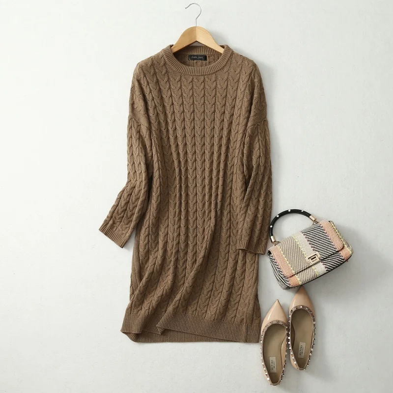 Женский 85% шелк 15% кашемир толстый теплый длинный свободный пуловер с круглым вырезом вязаное платье свитер Топ LY004