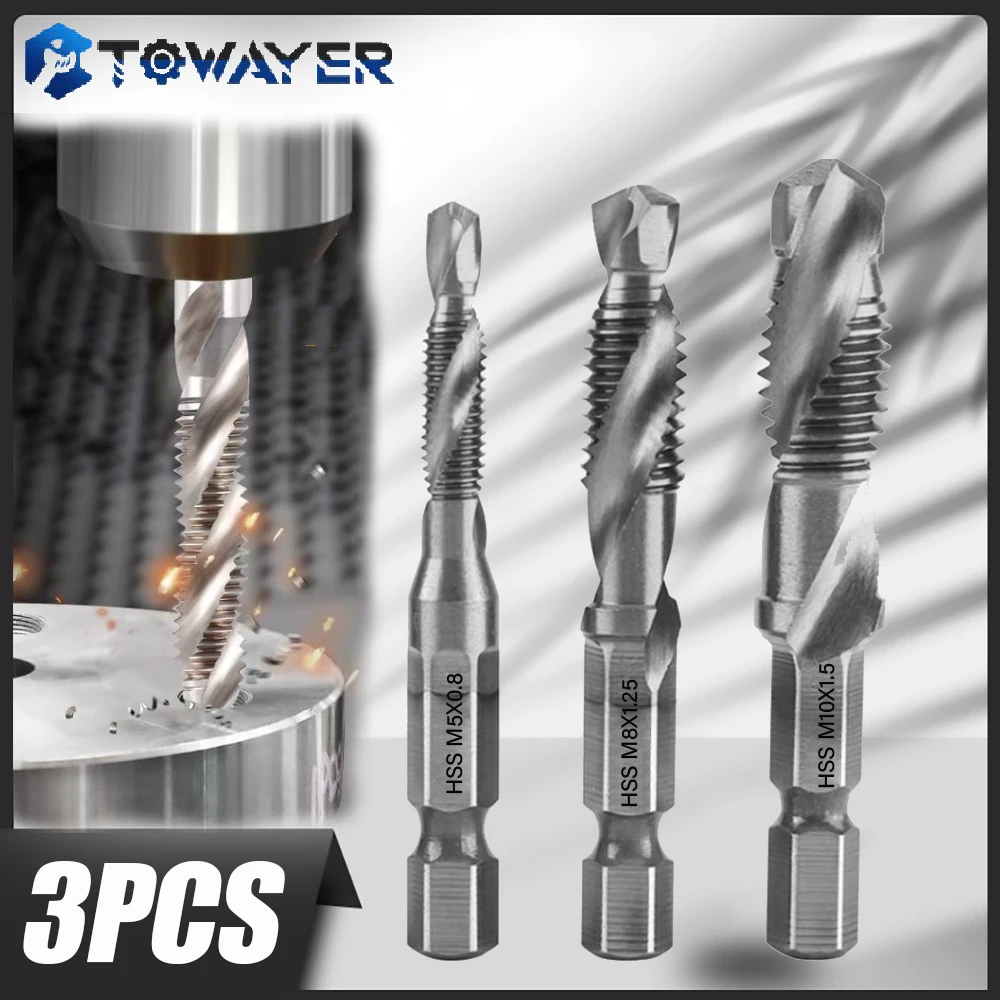 Сверло бит шестнадцатеричный хвостовик с титановым покрытием, винт из быстрорежущей стали, с метрической резьбой, M3 M4 M5 M6 M8 M10, 3 шт.