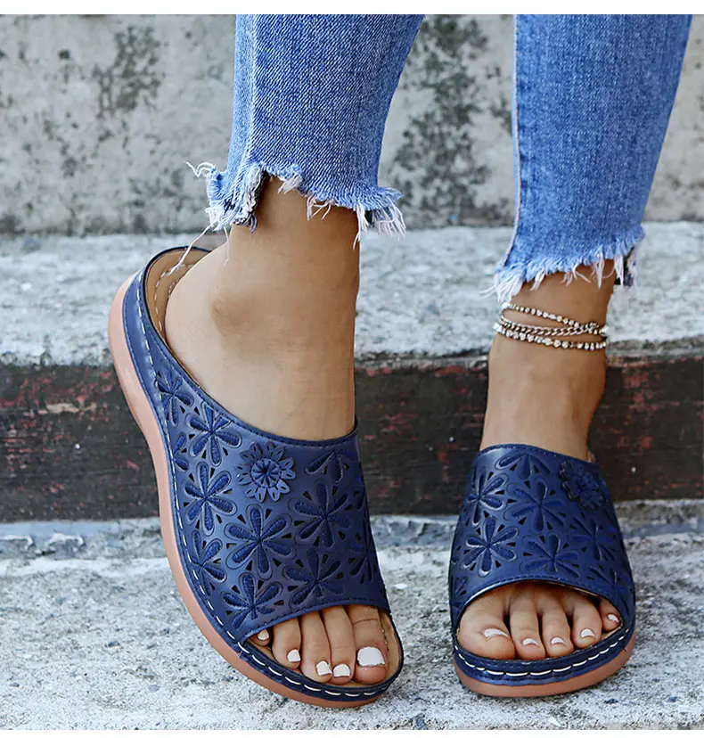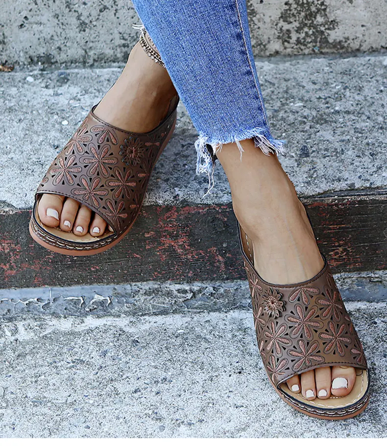 Женские босоножки, новинка сандалии на танкетке года, Повседневная летняя обувь, женская обувь с вышивкой на танкетке для женщин, лето женские сандали, шлепанцы