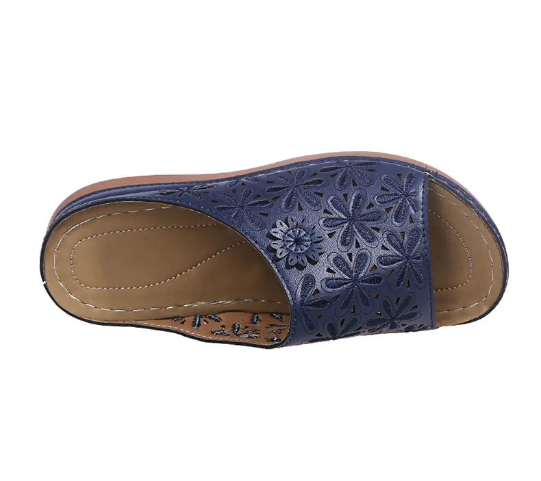 Женские босоножки; Новая повседневная Летняя обувь; Женская сандалии на танкетке обувь на танкетке с вышивкой; Летние женские сандали, шлепанцы
