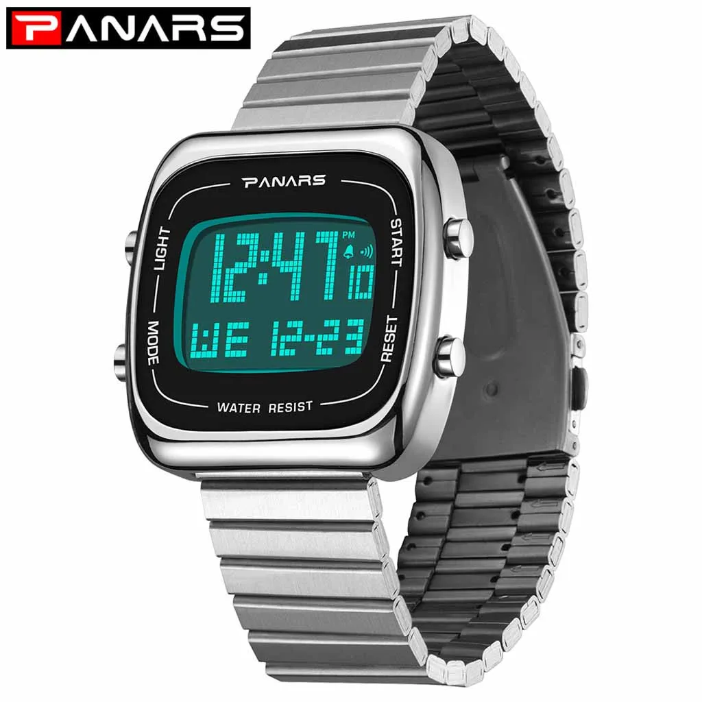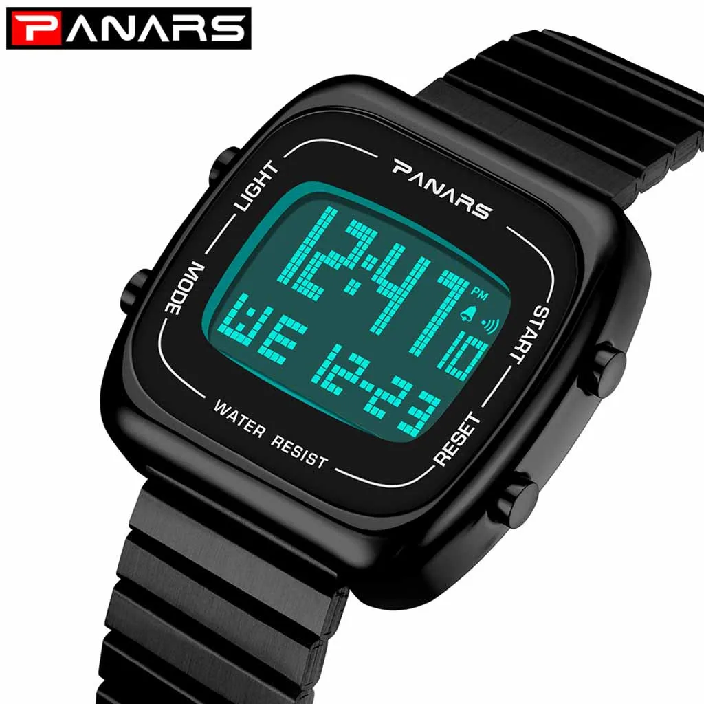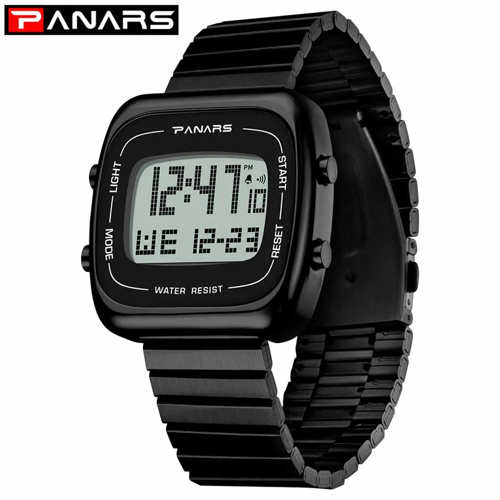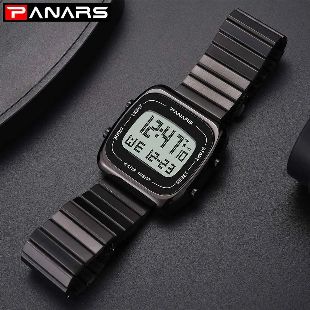 Мужские Водонепроницаемые многофункциональные электронные часы с большим экраном из легированной стали