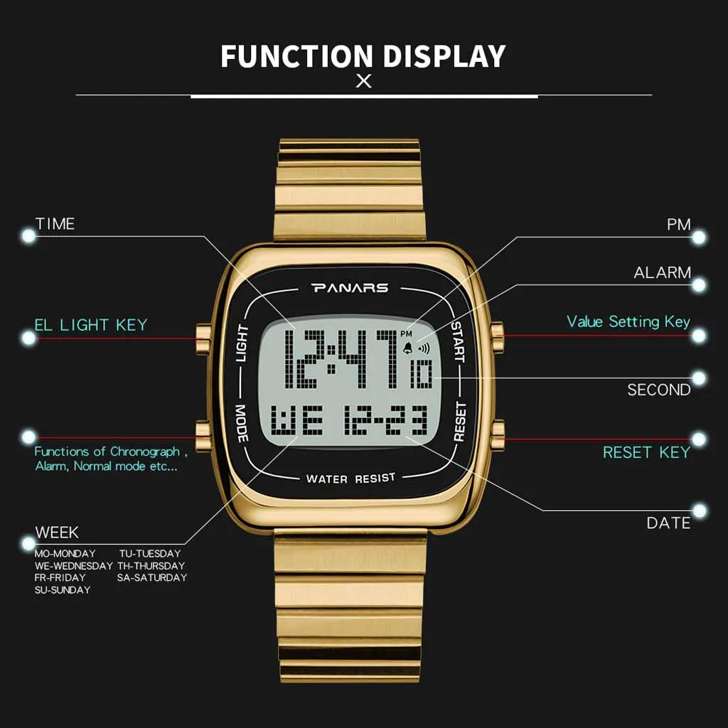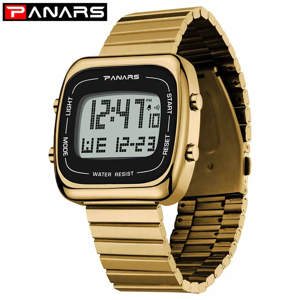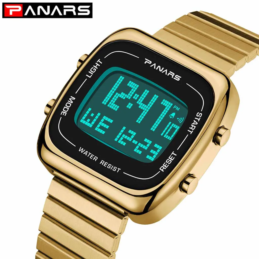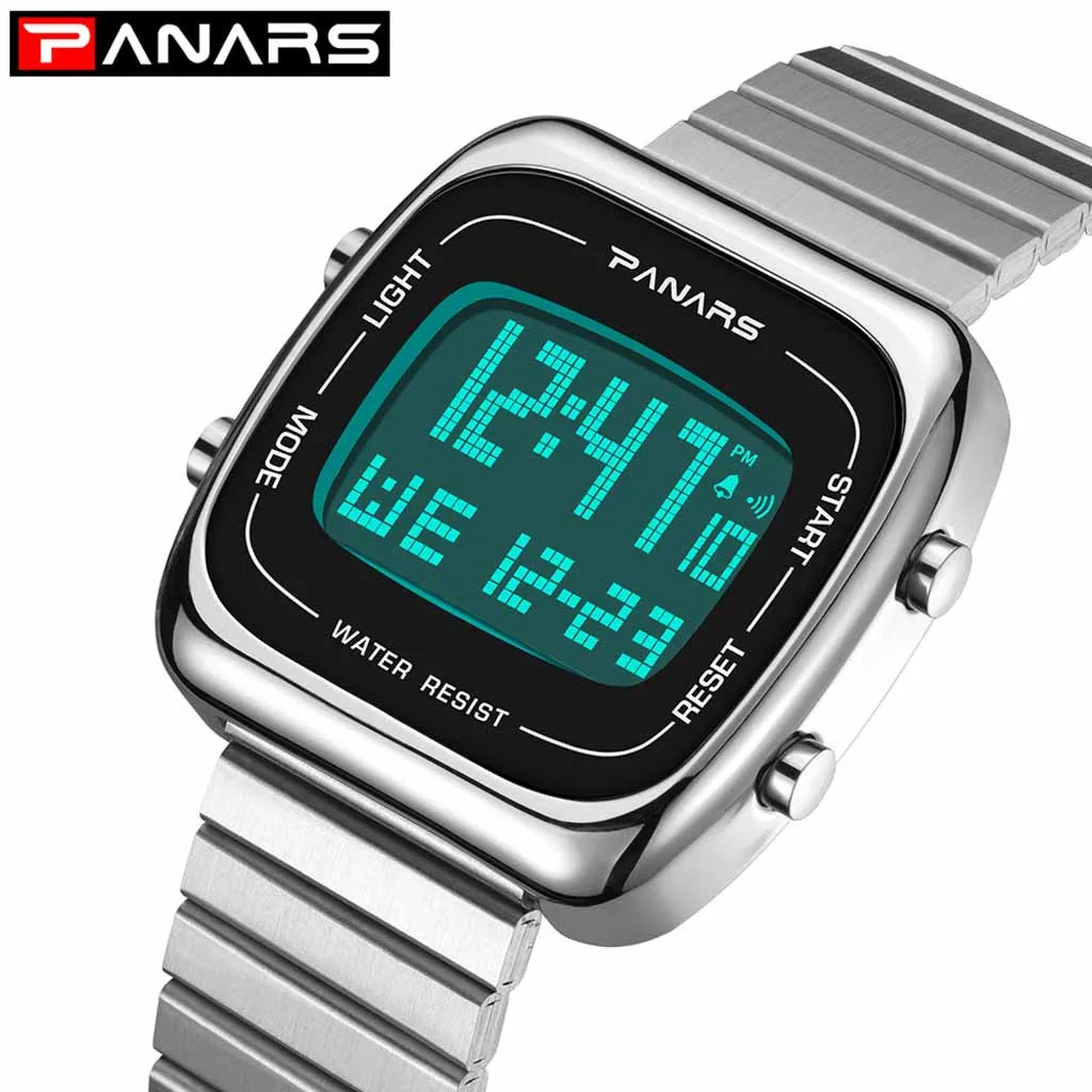 Мужские Водонепроницаемые многофункциональные электронные часы с большим экраном из легированной стали