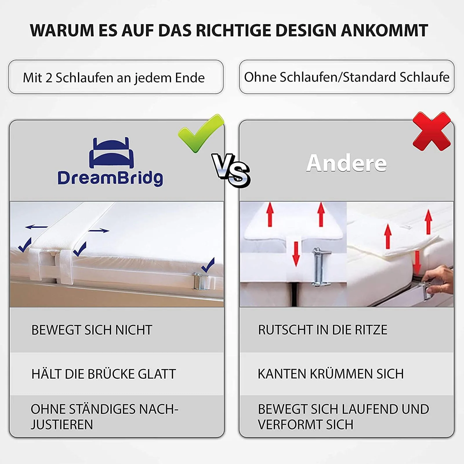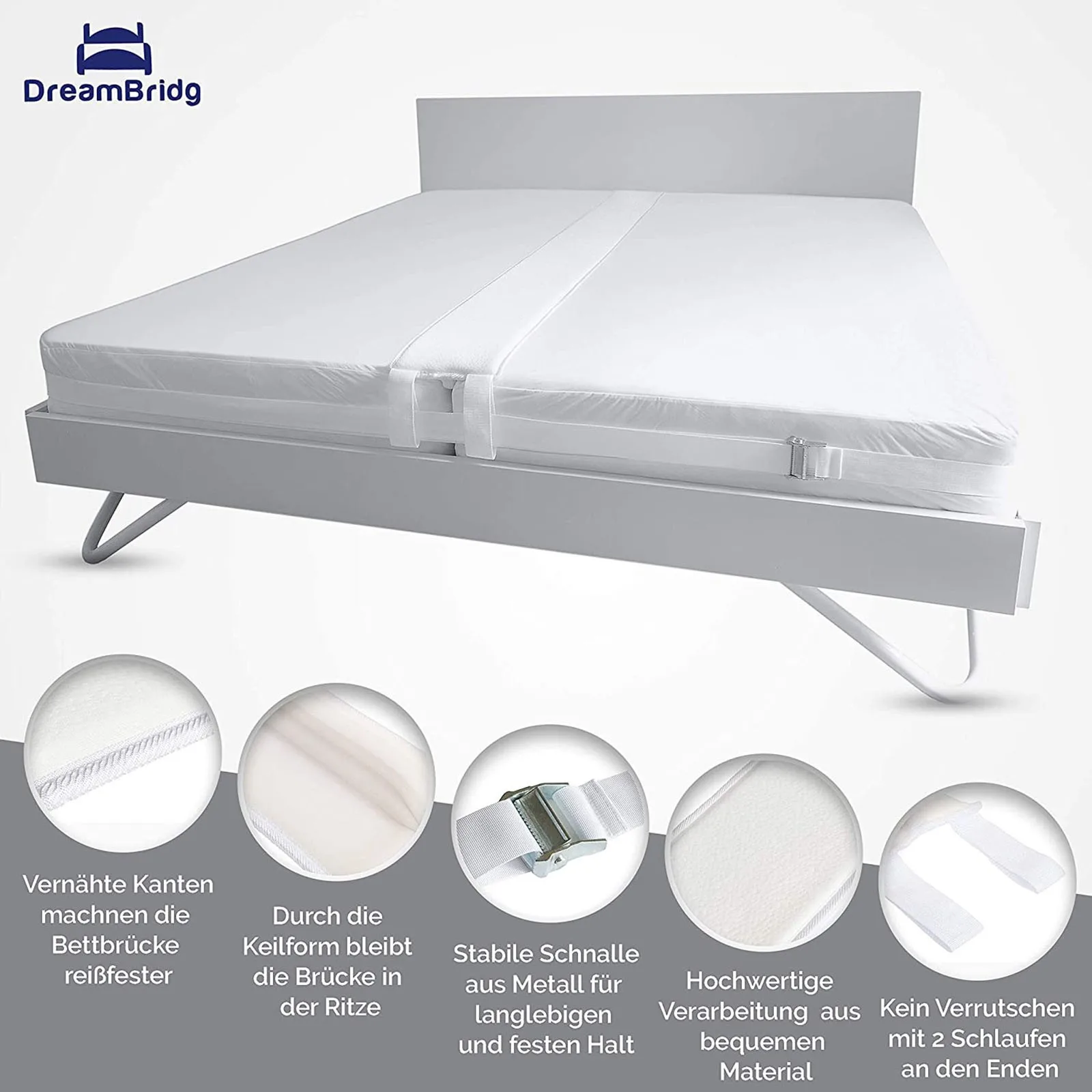 Простота установки: просто проведите кровать клином между матрасами. РеменьВмещает наполнителя матраса через 2 кольца с каждой стороны