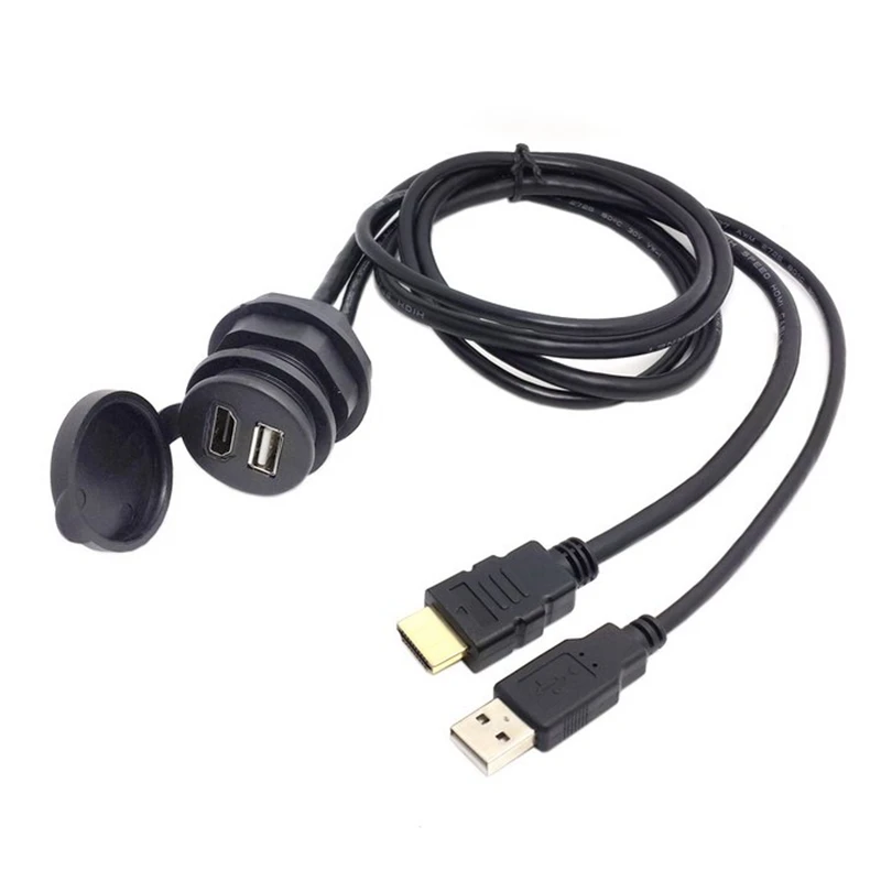 Водонепроницаемый встраиваемый кабель для установки на приборную панель автомобиля и мотоцикла, совместимый с USB 3,0 и HDMI