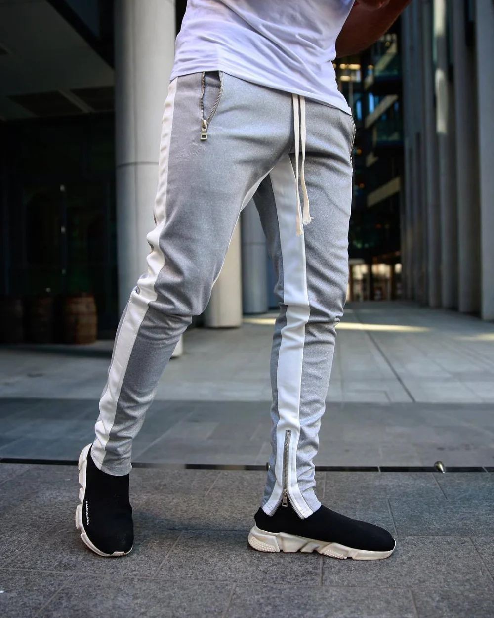 Леггинсы мужские, полосатые, на молнии, с двумя карманами