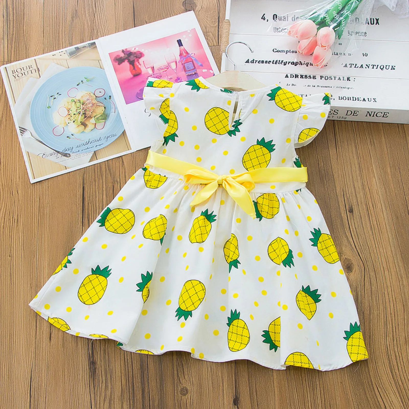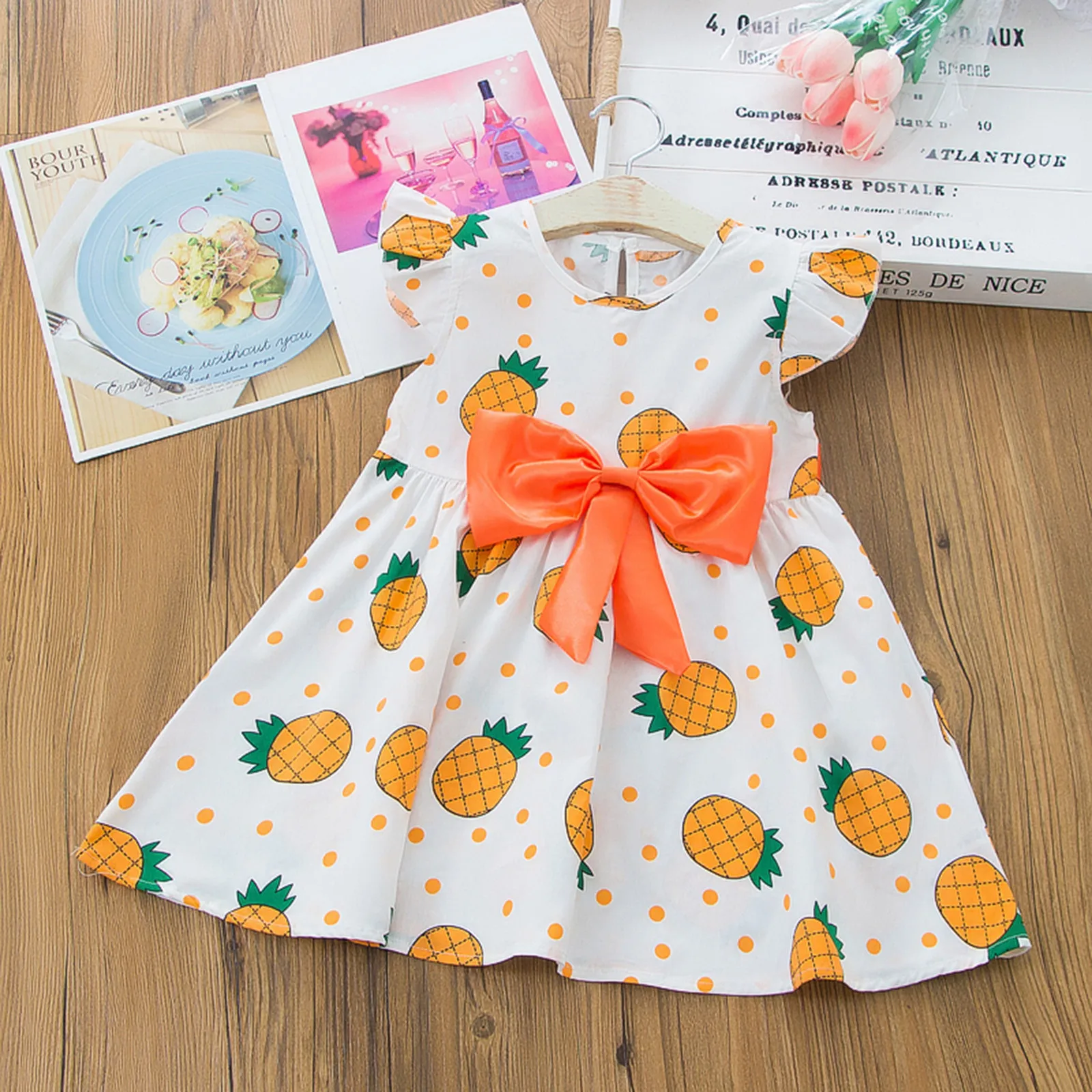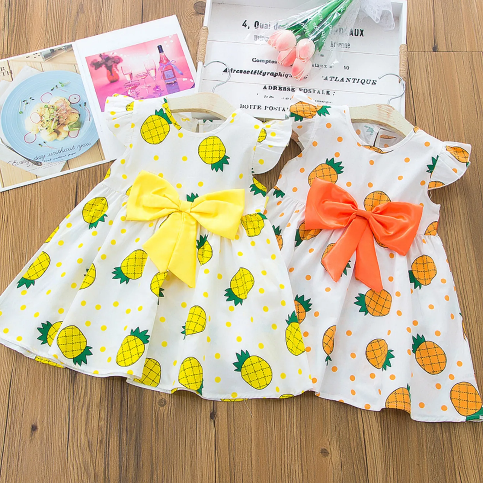 Платья для маленьких девочек, Повседневное платье с бантом и принтом в виде ананасов, праздничное платье принцессы