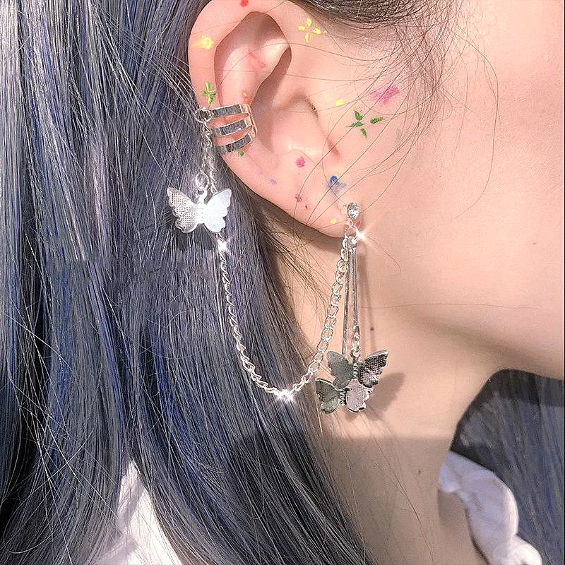 Новинка 2021, серьги-подвески в стиле панк с бабочками и кисточками, серьги с ушками и манжетами, Harajuku, крутые ювелирные украшения для женщин и девушек, подарки дружбы