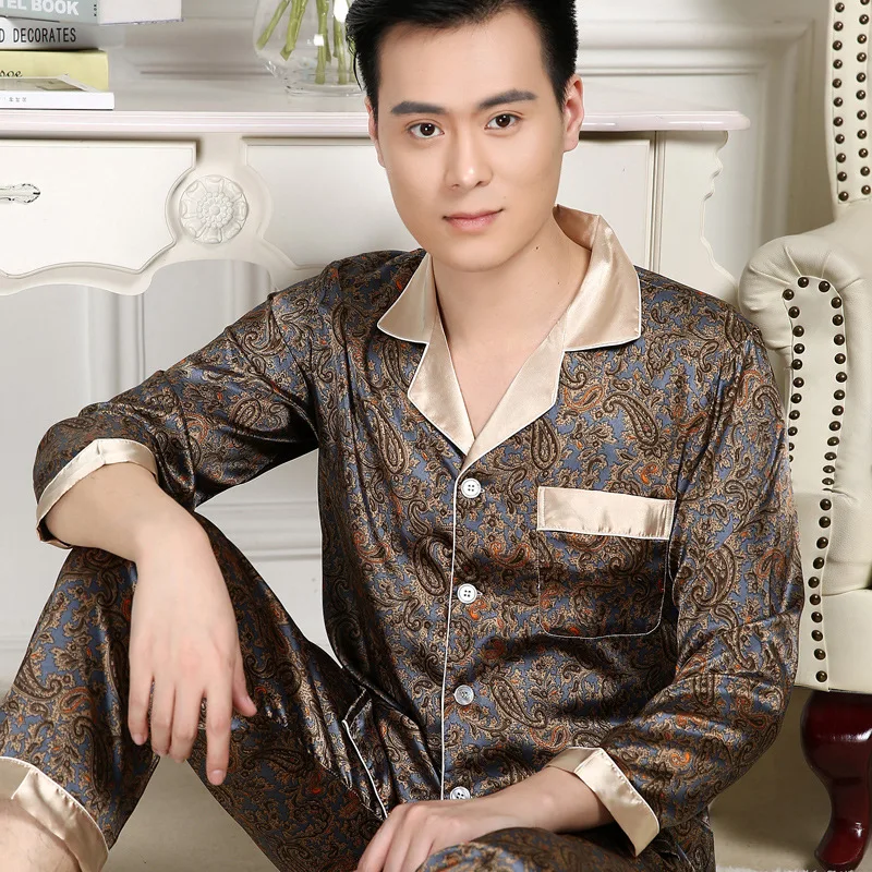 Мужские размеры, Мужская одежда для сна с длинным рукавом, топы и брюки, тонкая мужская одежда для сна, комплект пижамы
