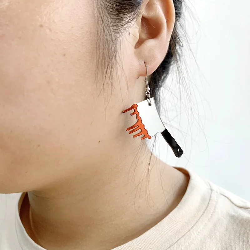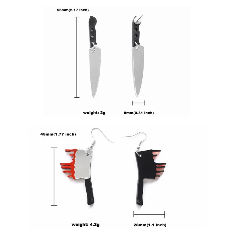 Нарезать его маленькие кровавые кухонные ножи шеф-повара слашер ужас акриловые серьги-гвоздики для женщин ювелирные изделия для косплея на Хэллоуин вечеринку