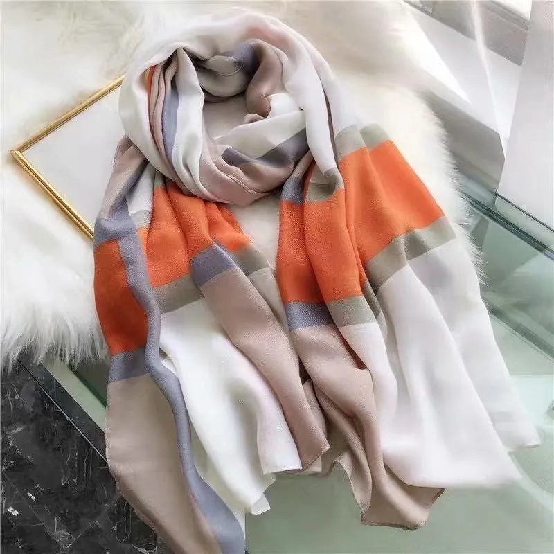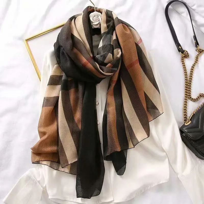 Женский шарф из пашмины, теплый хлопковый шарф с принтом, в клетку, для весны и осени, 2021