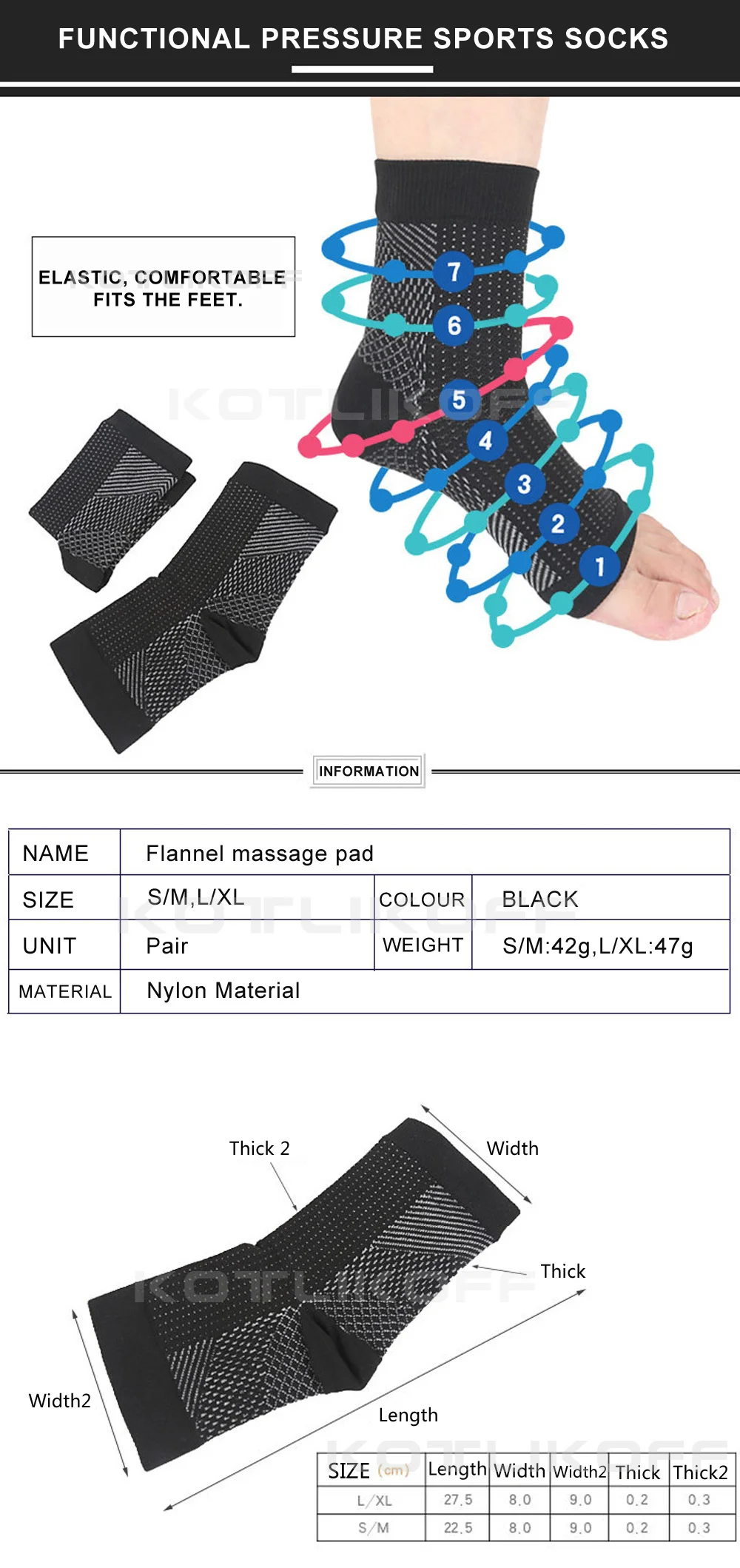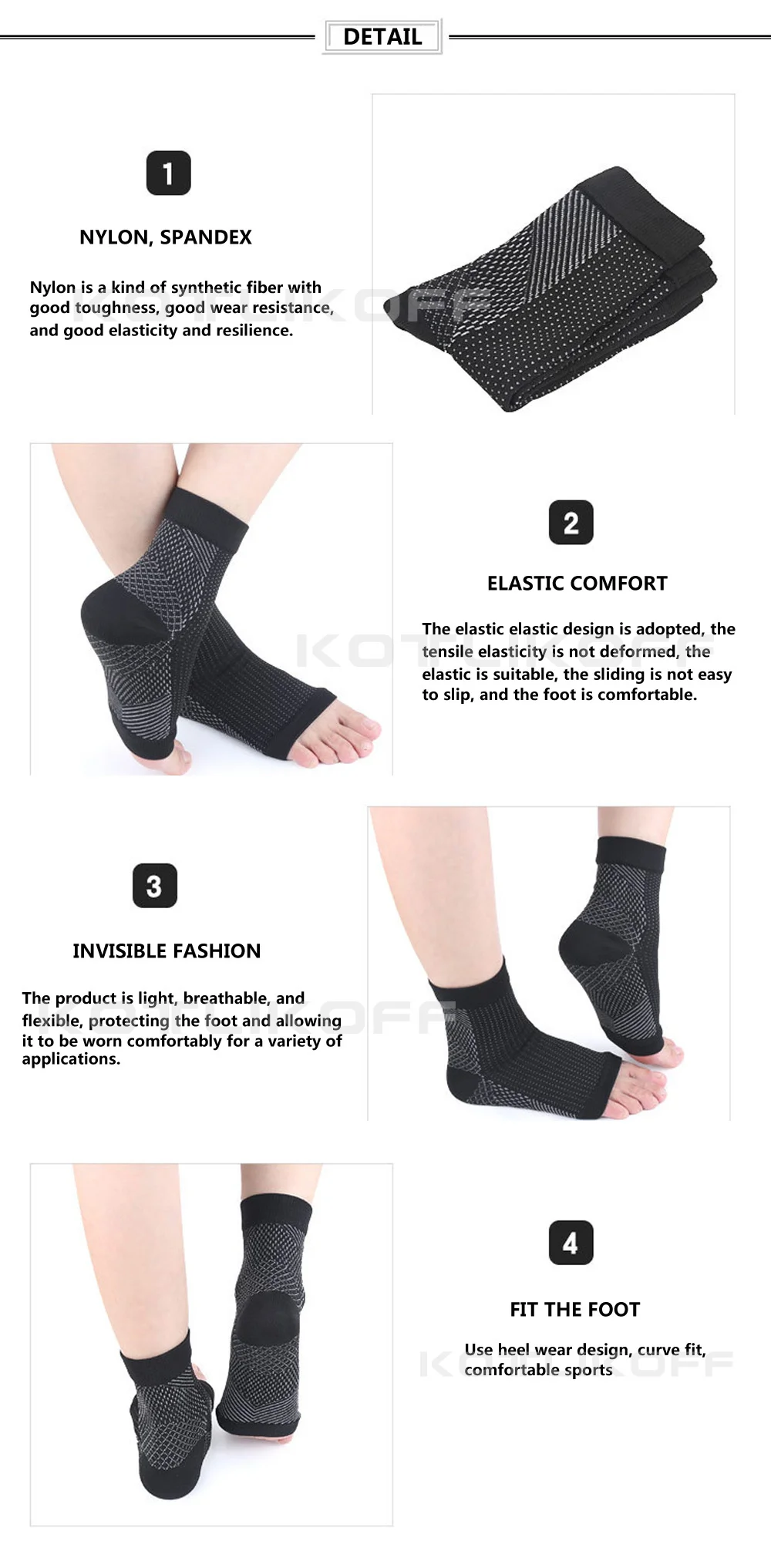 1. Рекомендуемый дизайн-подошвенный фасциит носок и голеностопный компрессионный рукав-это короткие Компрессионные носки, которые помогают улучшить кровообращение, уменьшить воспаление и помочь заживлению. Они не только обеспечивают поддержку подошвенного фасцита, но и помогают при других дефектах стопы, таких как отек, ахиллесовая пятка и шпоры лодыжки.