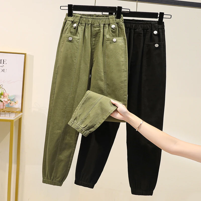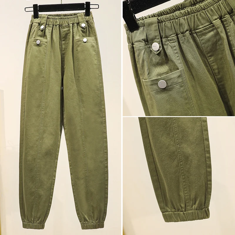 Брюки-карго женские с завышенной талией, свободные брюки болотного цвета в уличном стиле, с кулиской, с карманами, 4xl 5xl, весна-осень