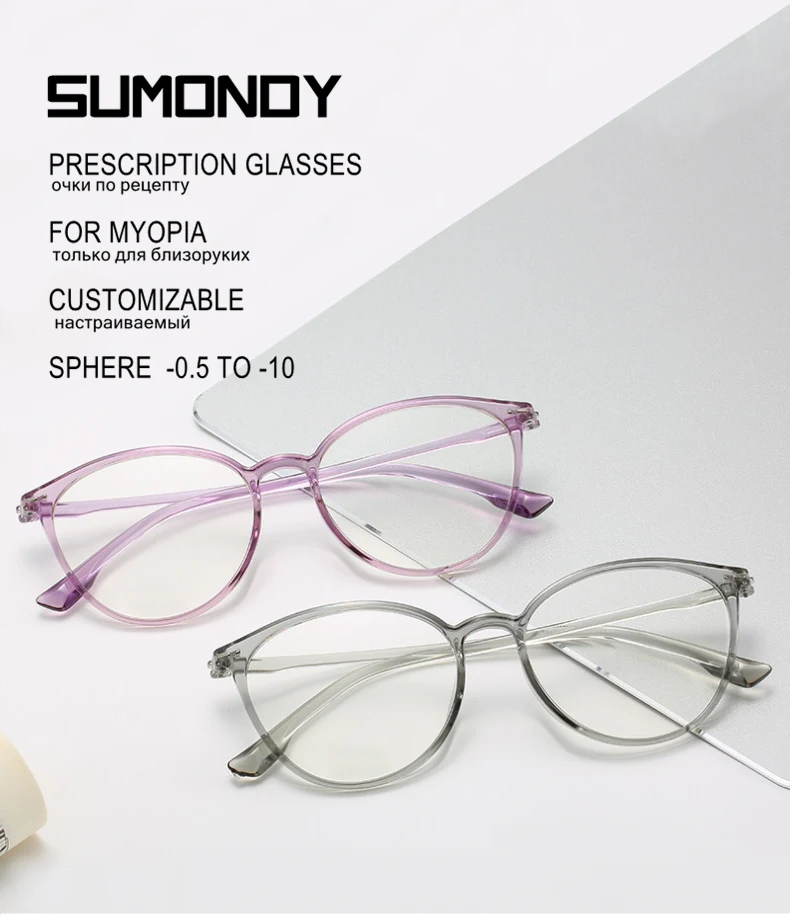 SUMONDY Рецептурные очки для близоруких 0-0,5 до-10 Для женщин мужчин антибликовыми свойствами светильник очки для близоруких TR90 ультра светильник рама UF67