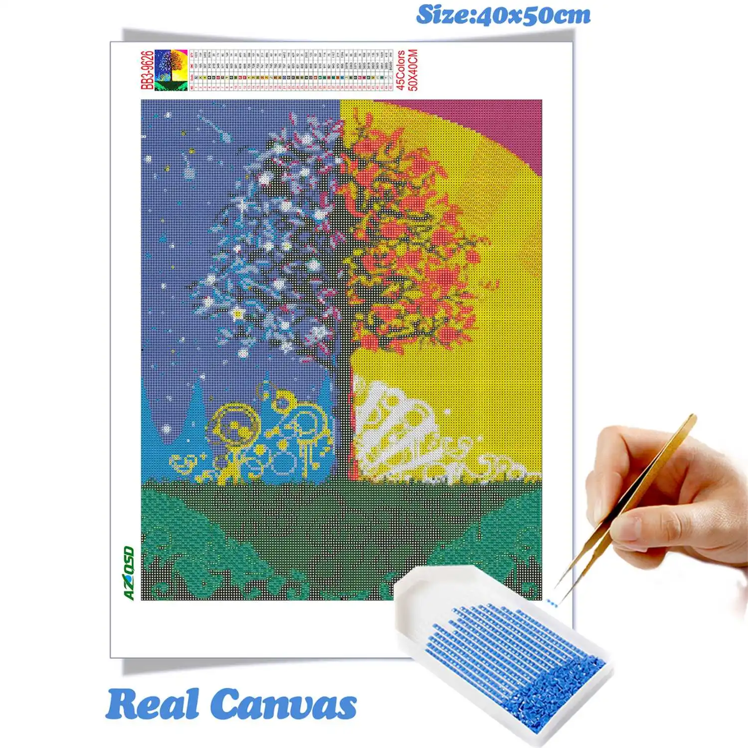 AZQSD полностью квадратная Алмазная Картина Дерево Лето Вышивка крестиком рукоделие Алмазная вышивка пейзаж Hamdmade домашний декор