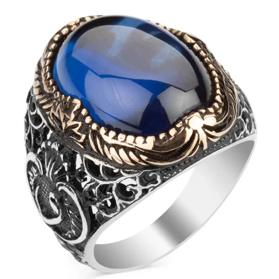 Для мужчин серебряный овальный Обычная модель синий драгоценный кам...