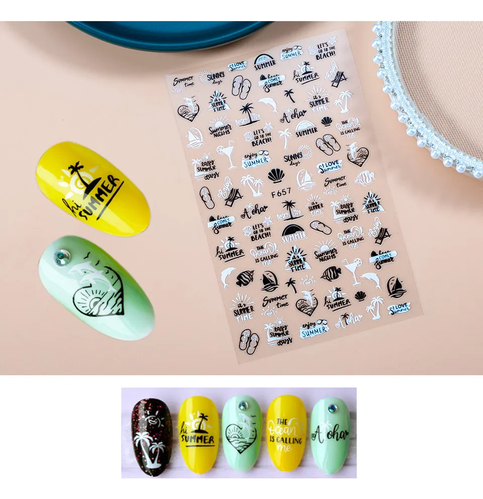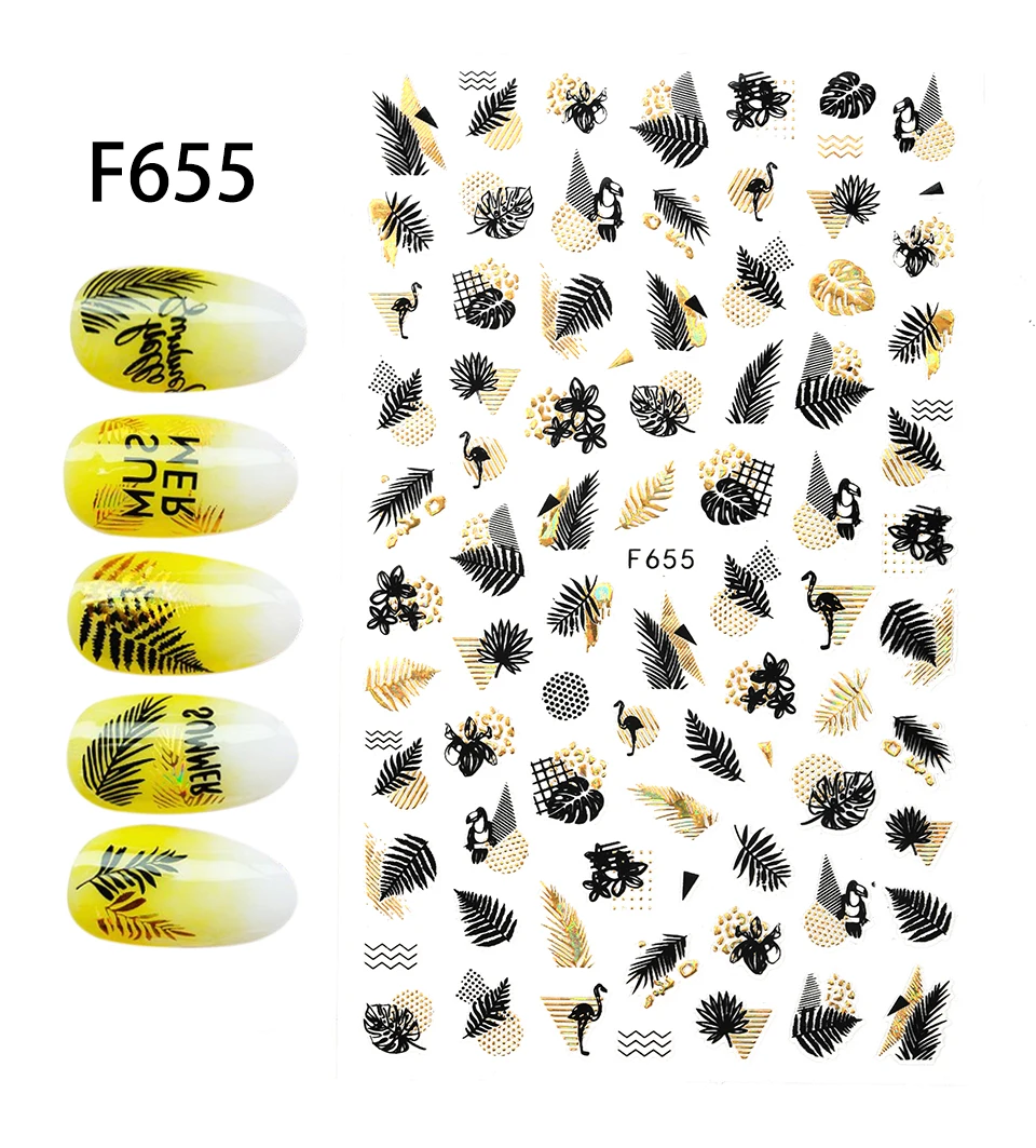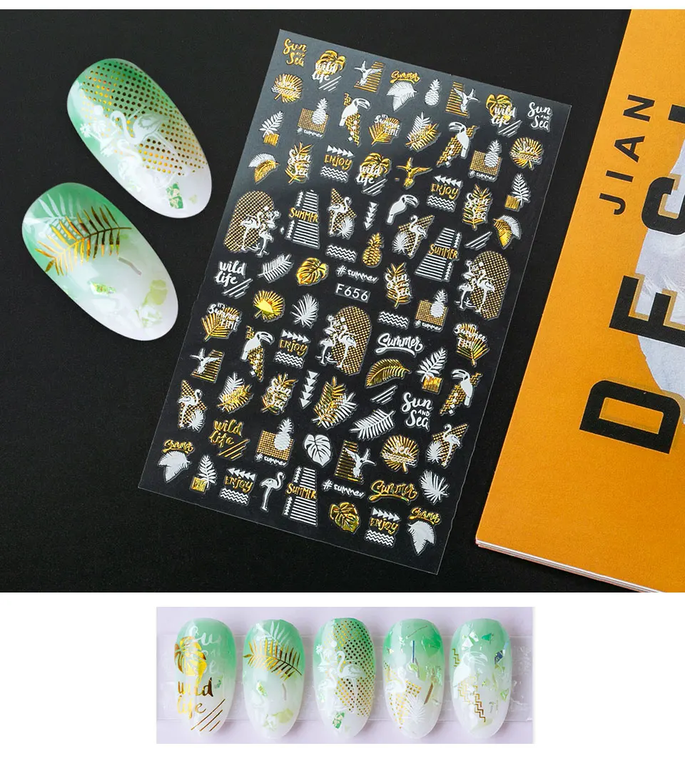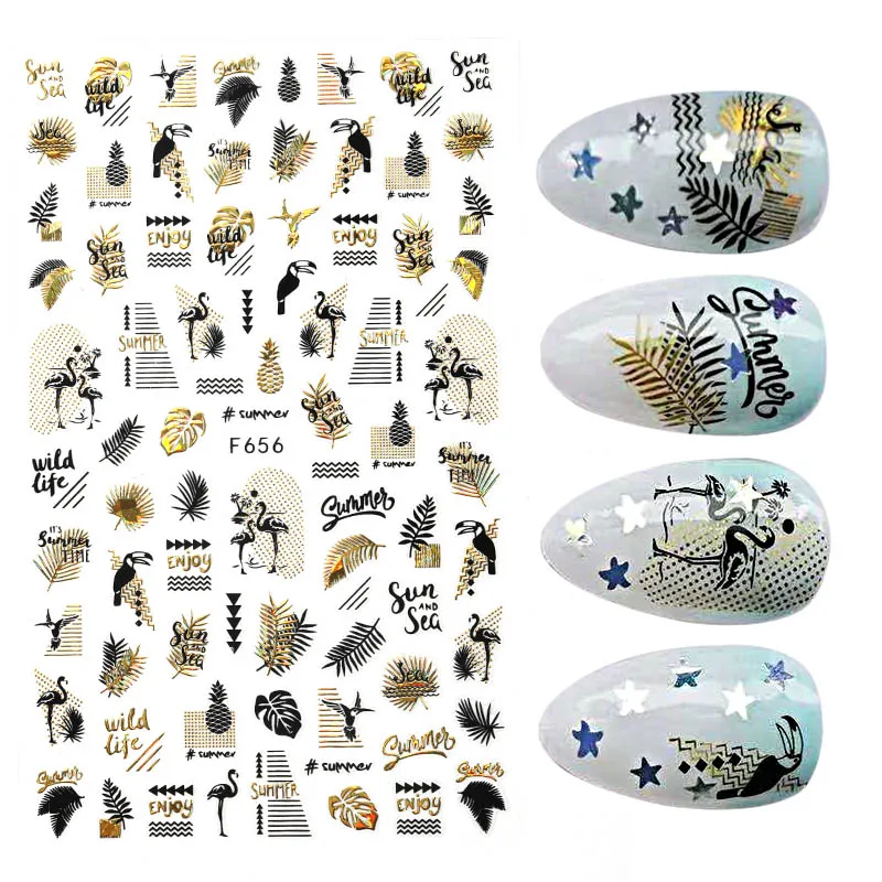 1 лист 3D наклеек для ногтей буквы кленовый лист Фламинго наклейка ...