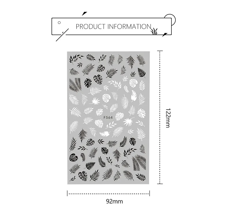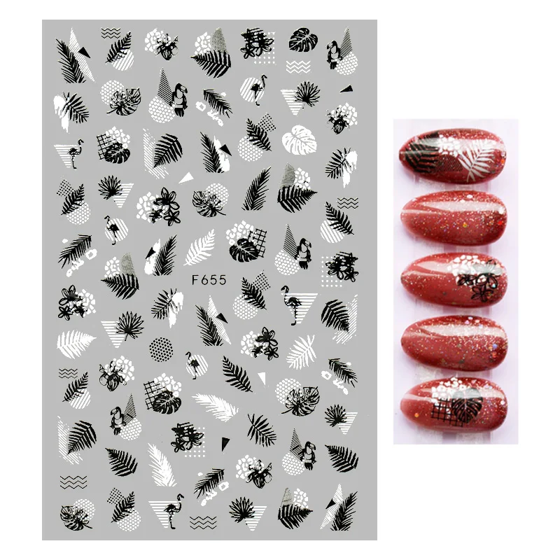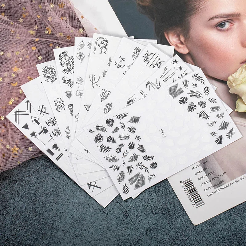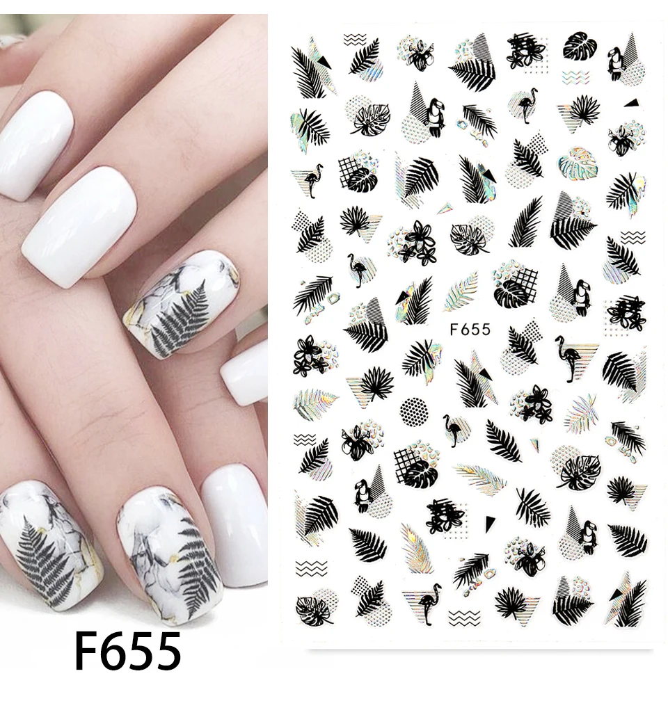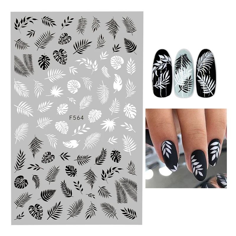 1 шт. 12,2*9,2 см 3D Черно-белый лист цветок наклейки для дизайна ногтей Геометрическая паста дизайн искусства