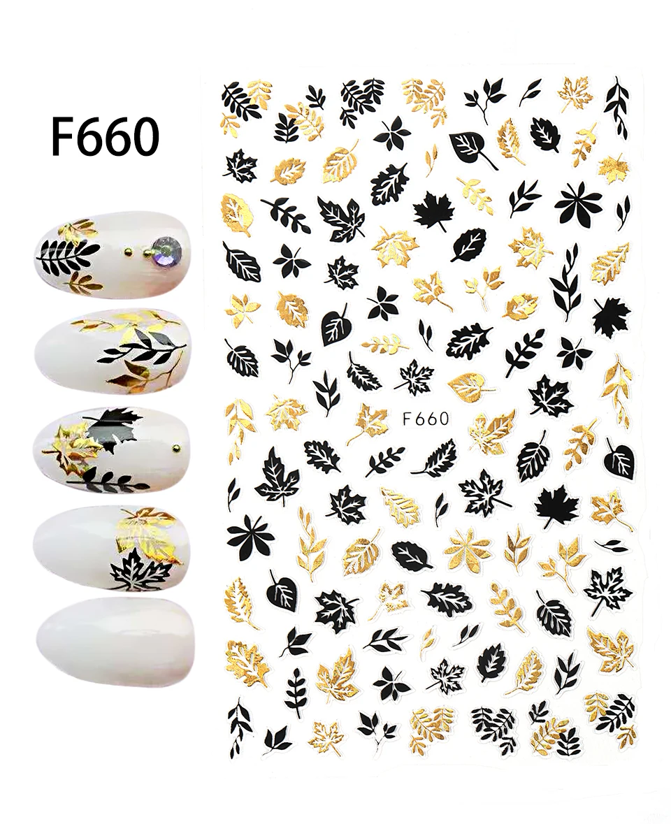 Черные лазерные золотые осенние листья, 1 шт., 3D наклейки для ногт...