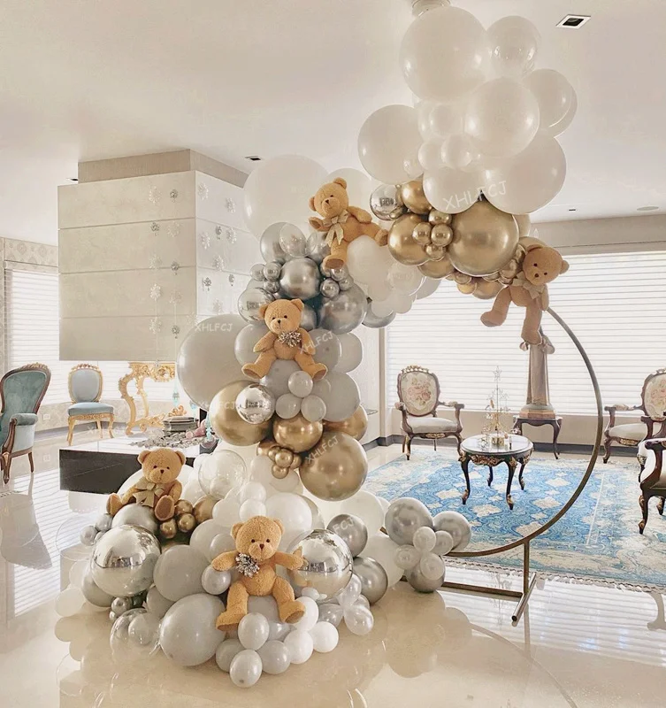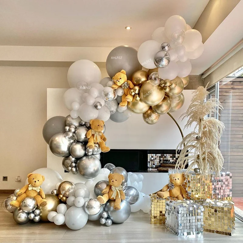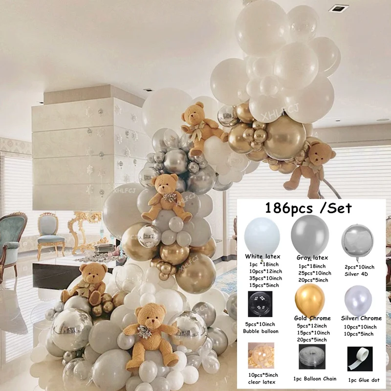186 шт. Белые Серые воздушные шары, гирлянда, арка, золотые, серебряные, хромированные 4D шары, украшения для свадьбы, дня рождения, вечеринки, товары для детской вечеринки