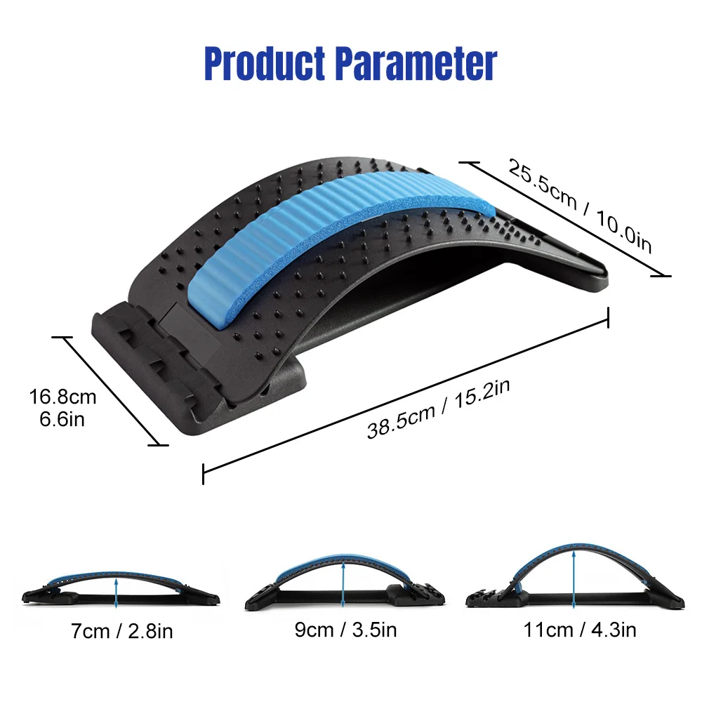 Этот массажер для спины был изготовлен из очень жесткого АБС-пластика, оснащенный различными настройками, чтобы полностью растянуть и облегчить боль в нижней части спины. Просто используйте в течение 5 минут, два раза в день для достижения оптимальных результатов. Он предназначен для легкого растяжения спины, безопасного, доступного и приятного. Используется для облегчения хронической боли в спине, коррекции постурального дисбаланса, восстановления естественной кривизны спины и улучшения гибкости мышц плеч и спины. Регулируемый, есть 3 разных уровня, просто выберите тот, который подходит вам больше всего, положите его на пол, кровать или даже положите на стул.