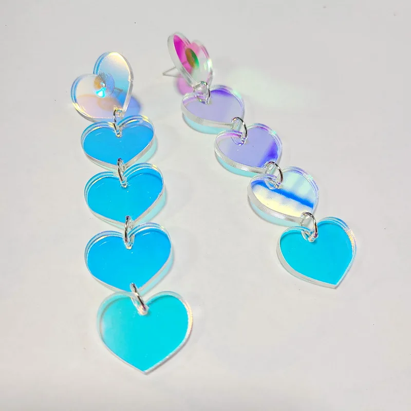Переливающиеся акриловые серьги-гвоздики с лазерной резкой в несколько рядов сердца женские модные аксессуары для вечеринок