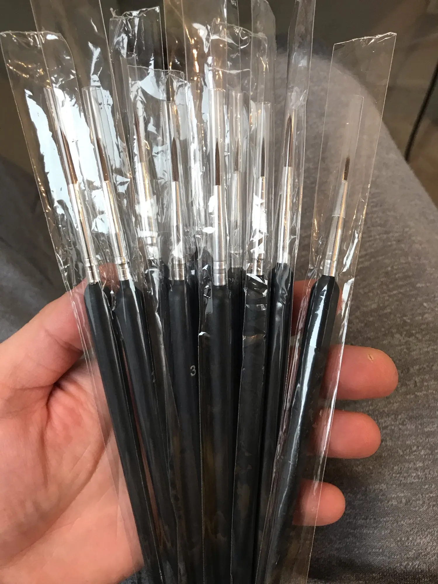 Они не очень хорошего качества. Щетинки кисти очень плохие и совсем не последовательные. На самом деле, сколько стоит весь пакет, стоит кисть хорошего качества. Щетки могут стоить немного толще, но тонкие нет.