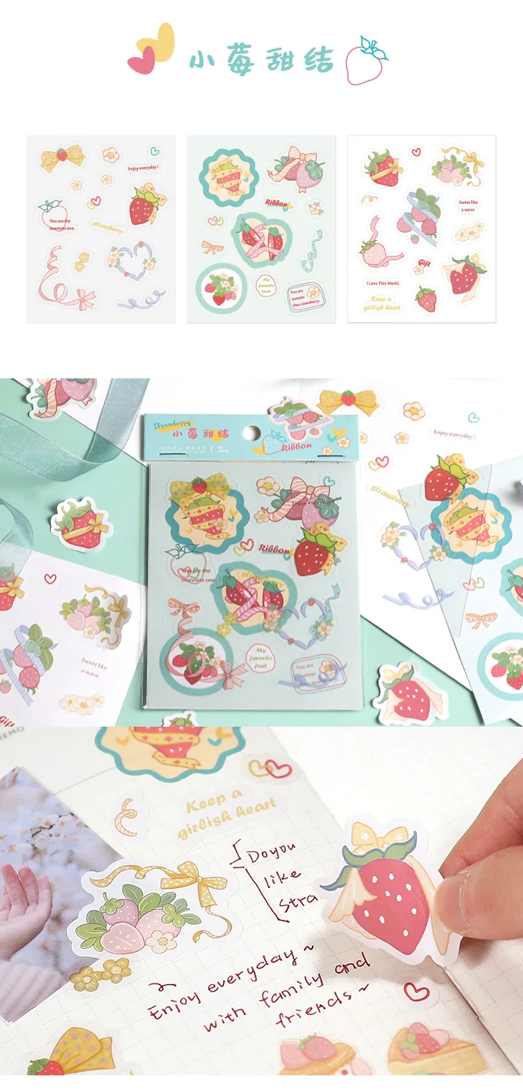 3 листауп наклейки для ногтей Сумка милая лента с клубничным узором декоративные Стикеры s Тетрадь дневник Стикеры