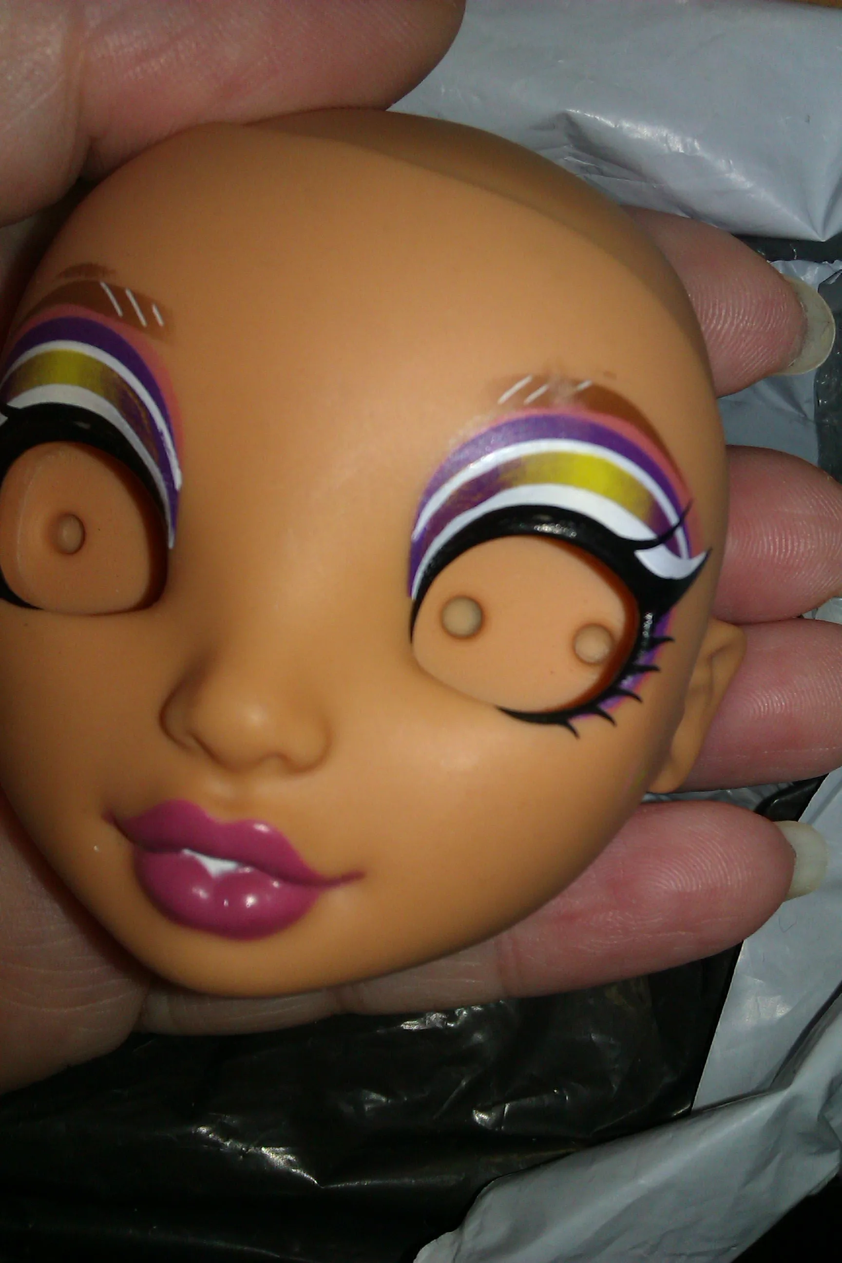 Голова оригинал. выбраковка по мейку. Мне попалась очень ладная голова. Брак только на бровях (на одной немного размазано, около другой лишнее нарисовано. но это все легко удалить. Губы идеальны, глаза тоже отлично нарисованы. Спасибо!